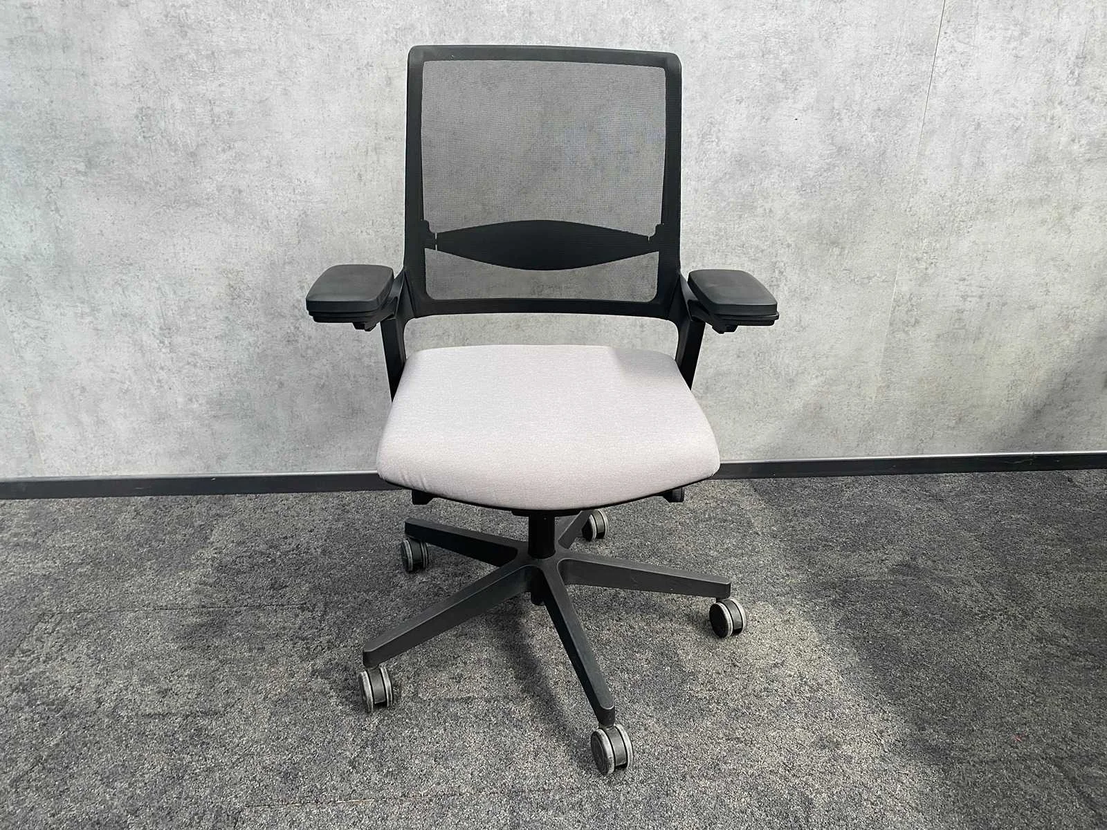 Kavel bestaande uit 2x Interstuhl Movy ergonomische bureaustoel v.v. 4D armleggers, zithoogte en zitdiepte instelbaar, kantelmechanisme rugleuning, verstelbare lendensteun. ----- 2x Bachman opbouwstekkerblok (2x230V + 2x USB) ----- 1x in hoogte verstelbaar duo bureau v.v. handslinger, grijs/ antraciet akoestische scheidingswand, draadgoot. Afm. ca. hoogte 64.5 tot 92.5 cm. bxd 140x80 cm. - LET OP transportafmetingen bureau ca. hxbxd 65x140x170 cm. Slingerbureau: true