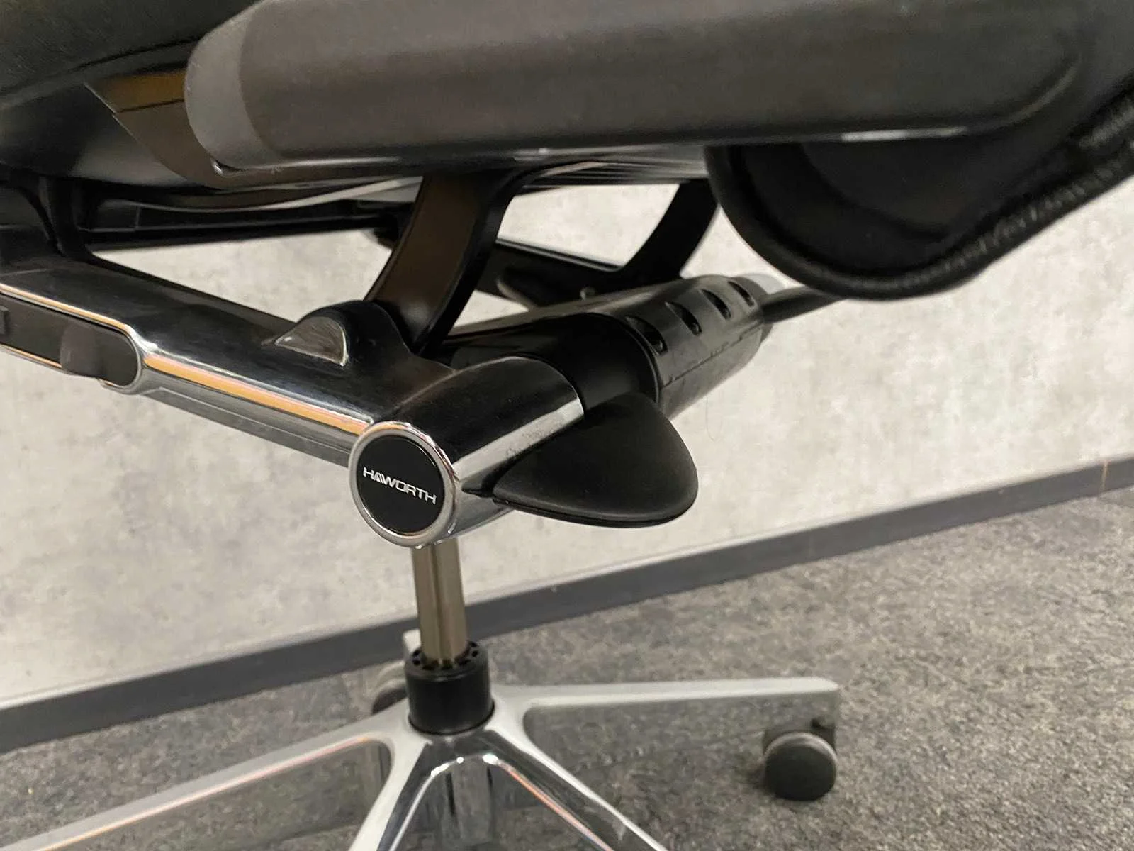 V.v. 2D armleggers, kantelmechanisme, zithoogte en zitdiepte instelbaar, lendensteun Merk: Haworth Comforto 99