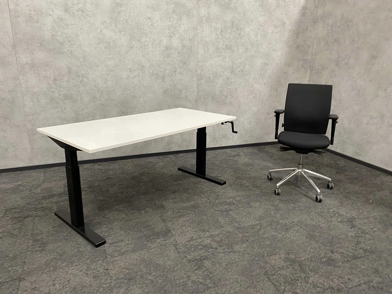 Kavel bestaande uit 1x zit-zit slinger bureau. --- 1x Chairsupply ergonomische bureaustoel v.v. 3D verstelbare armleggers, zithoogte en zitdiepte instelbaar, kantelmechanisme rugleuning, rughoogte instelbaar, zwarte stoffering. Merk: Chairsupply