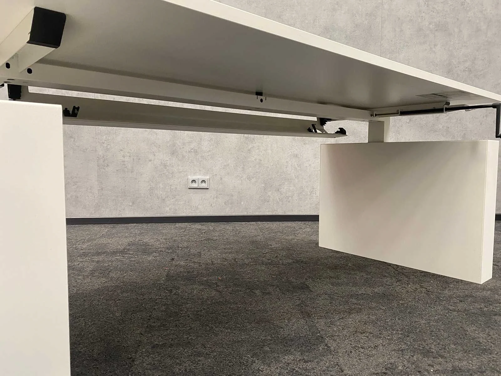 Met draadgoot Merk: Palmberg Crew Slingerbureau: true Kleur: wit Breedte: 180cm Materiaal: metaal, melamine Diepte: 80cm