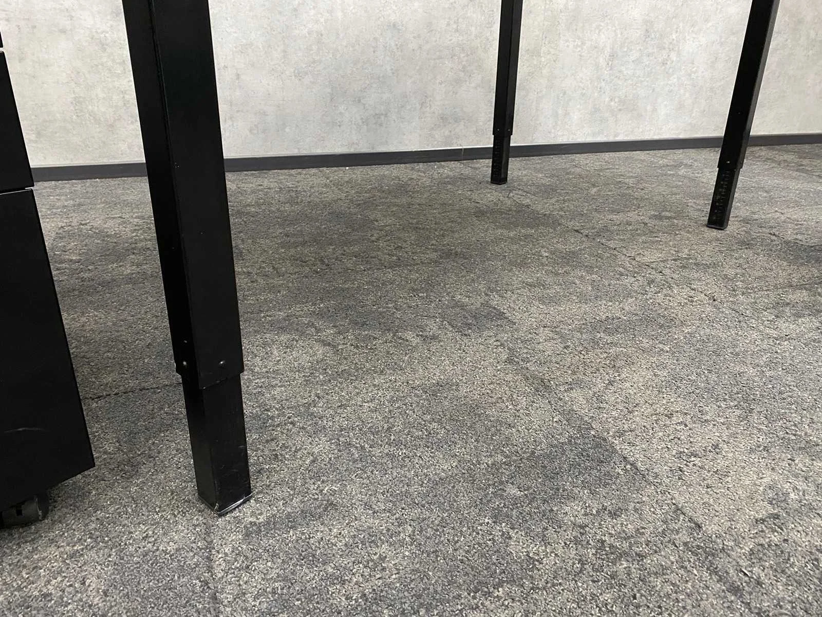 Kavel bestaande uit: 1 x slinger bureau v.v. kabeldoorvoer, draadgoot en opbouwstekkerblok --- 1 x verrijdbaar stalen ladeblok afmeting ca. h63xb41.5xd50cm zonder sleutel --- 1 x WeWork netweave bureaustoel v.v. in hoogte verstelbare armleggers, verstelbare lendesteun, zithoogte instelbaar, kantelmechanisme rugleuning