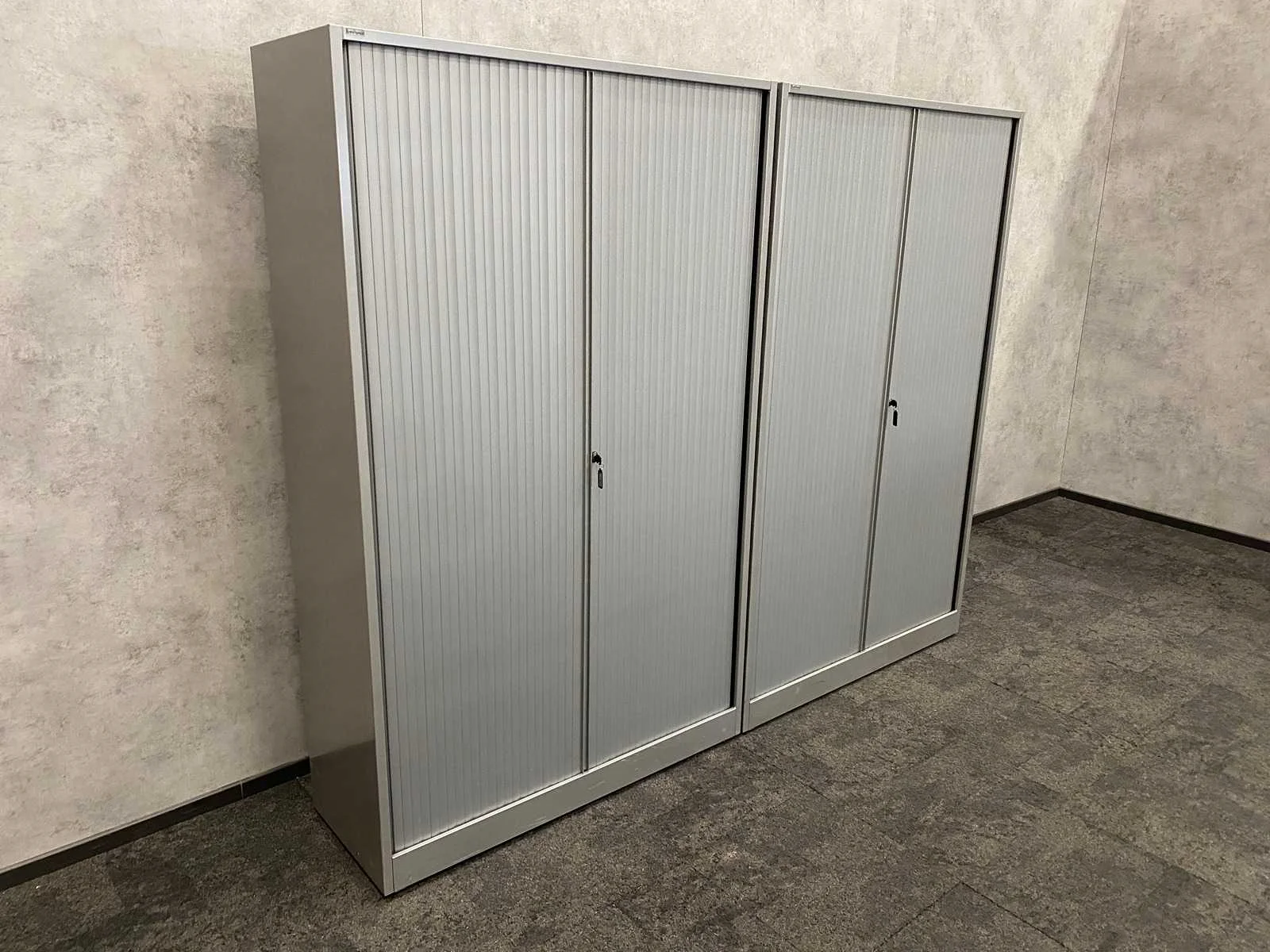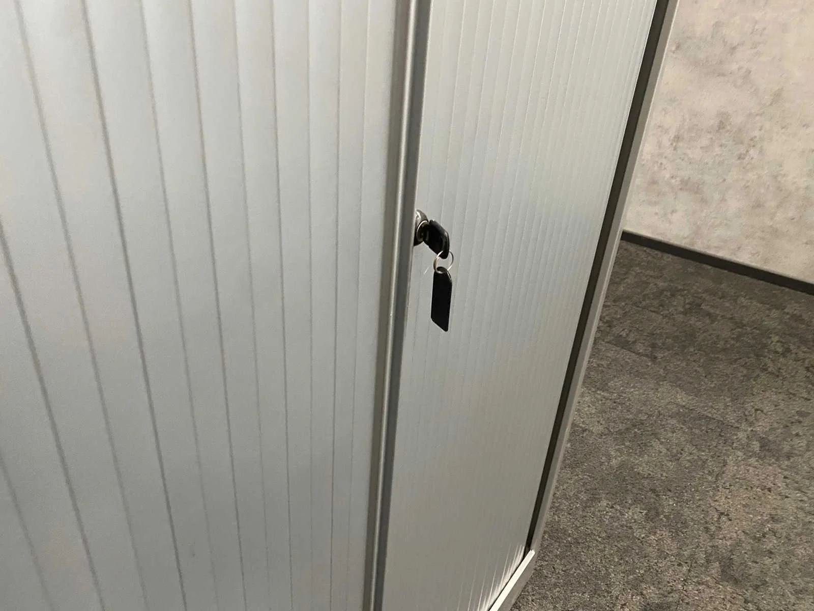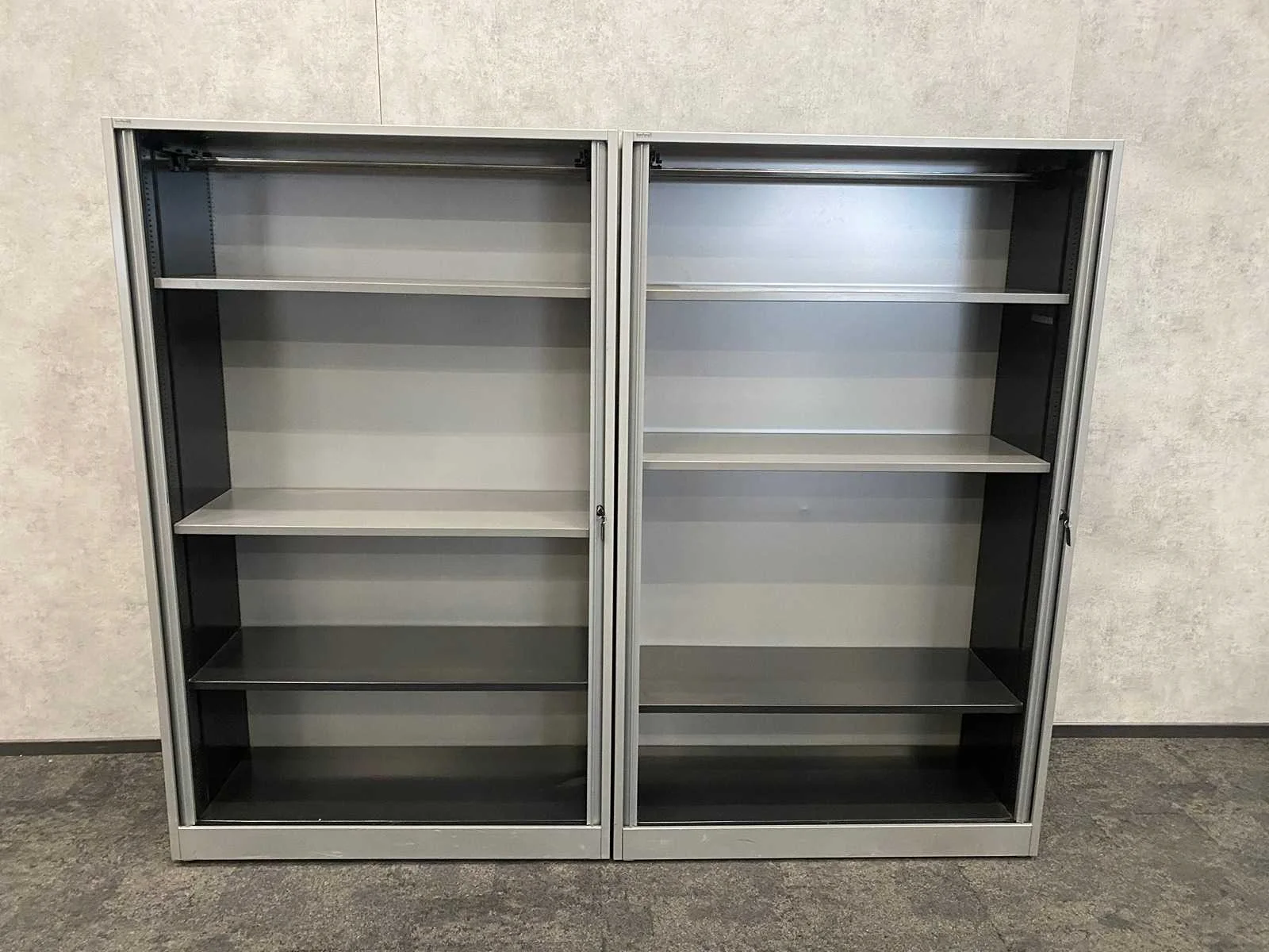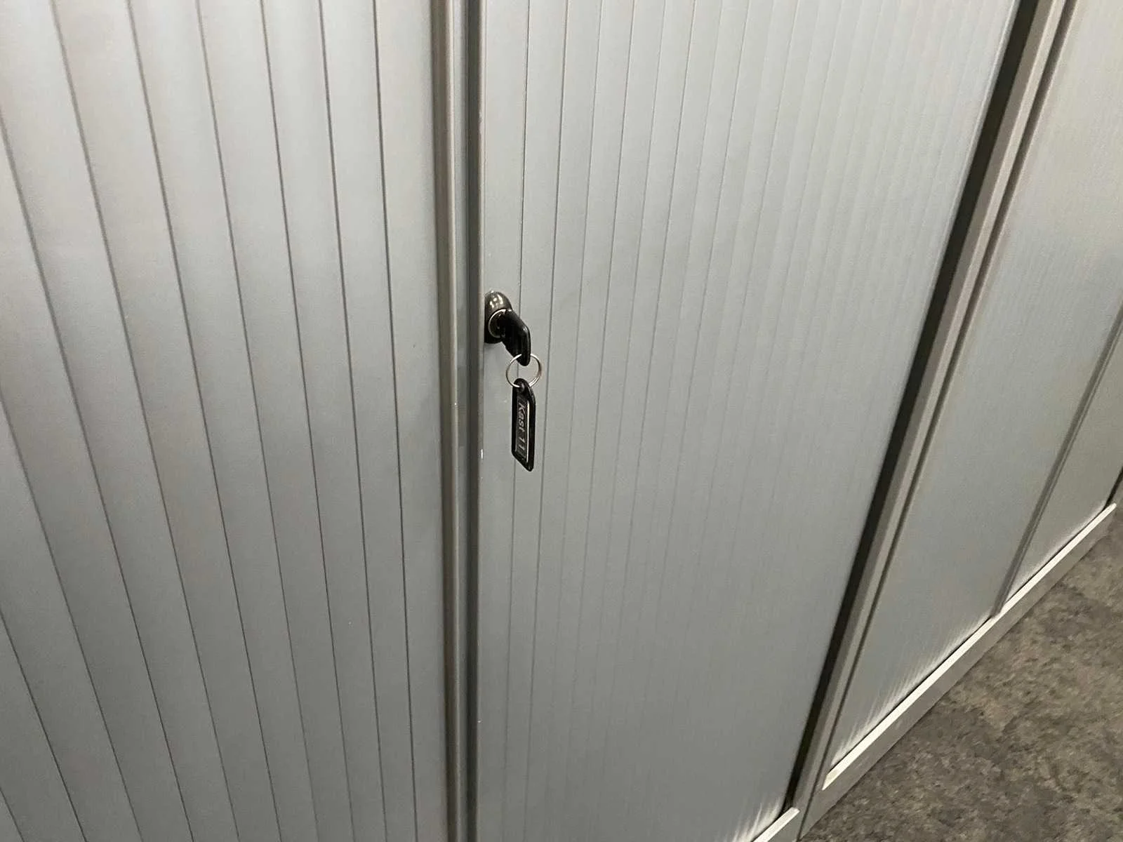 V.v. sleutels en per zijde 3 verstelbare legborden Merk: 2x Ahrend Kleur: grijs Breedte: 120cm Hoogte: 195cm Diepte: 45cm Materiaal: metaal / kunststof