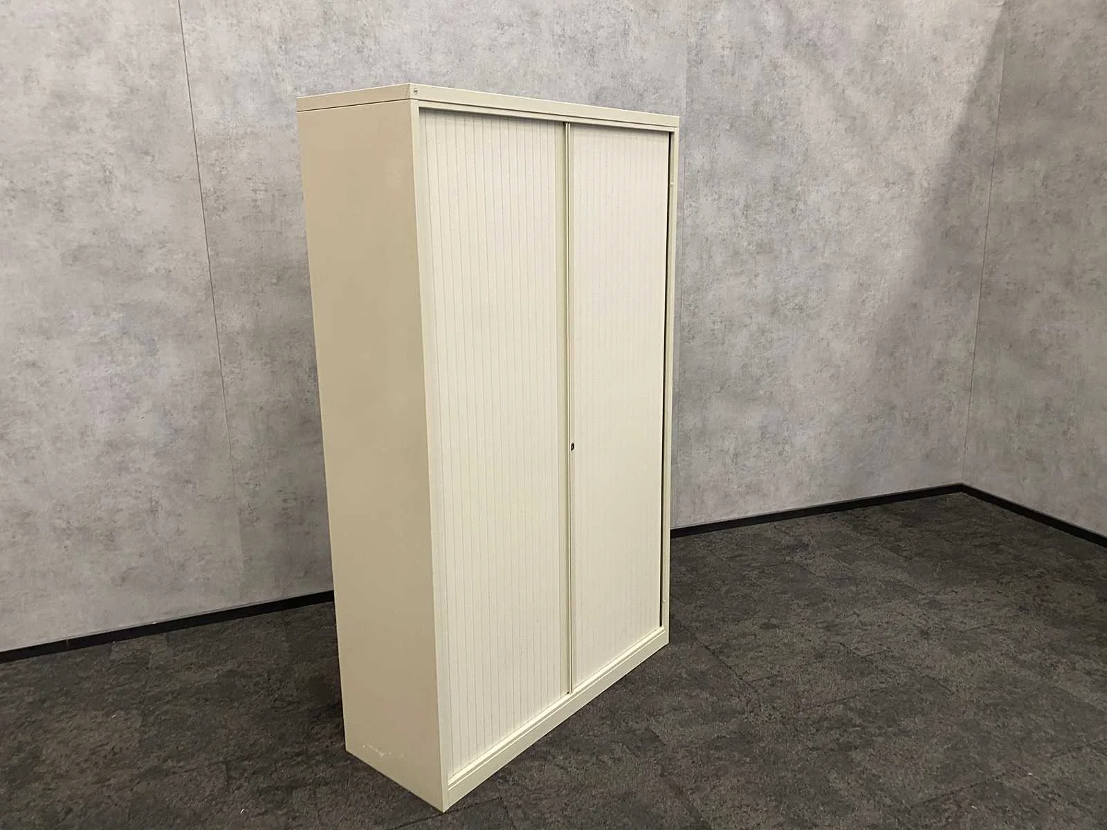 Zonder sleutel en v.v. 4 verstelbare legborden Merk: Drentea Kleur: beige Breedte: 120cm Hoogte: 195cm Diepte: 45cm Materiaal: metaal / kunststof