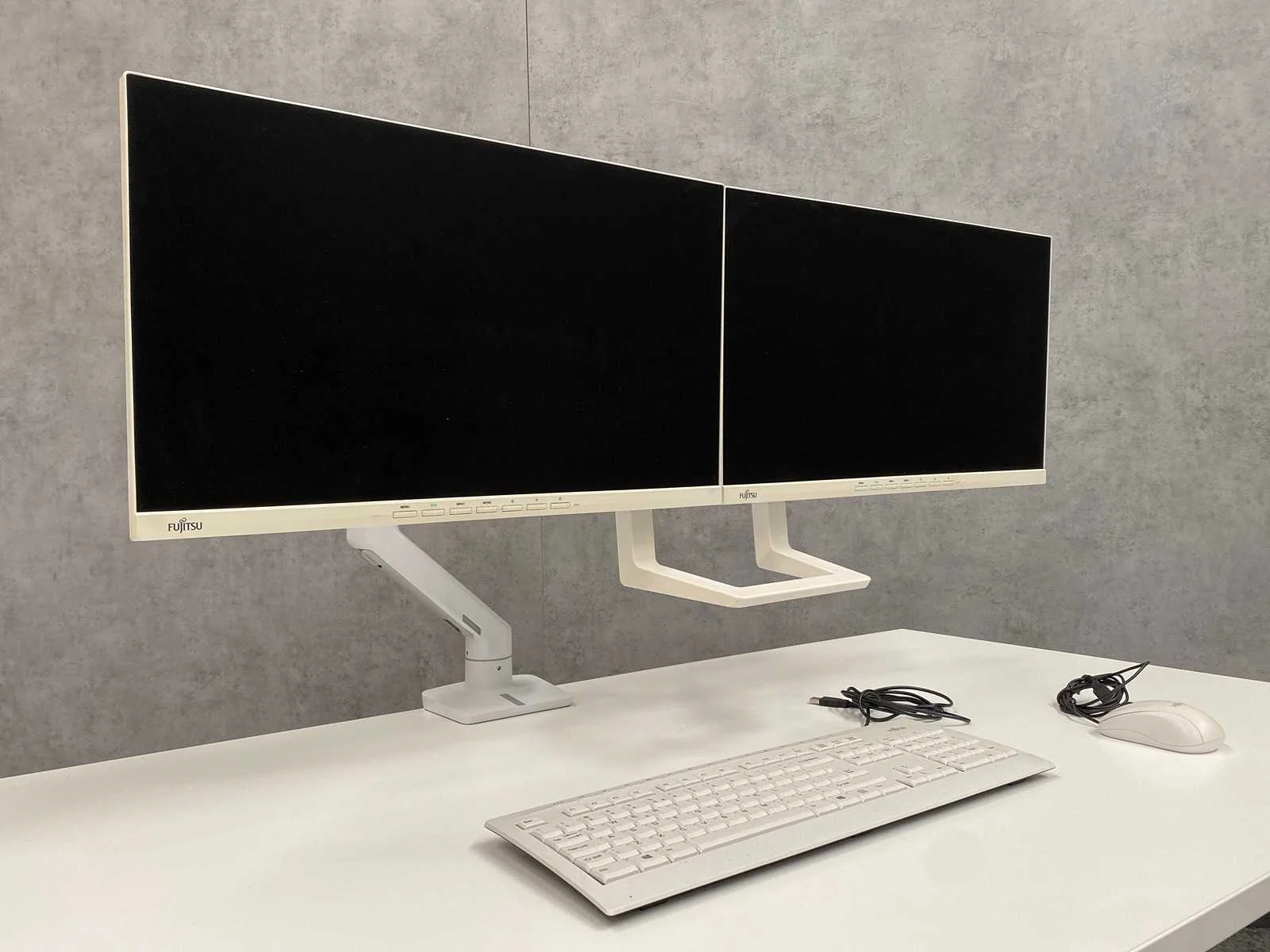 Fujitsu dy24-9t - 24" lcd monitoren met ergotron dubbele monitorarm