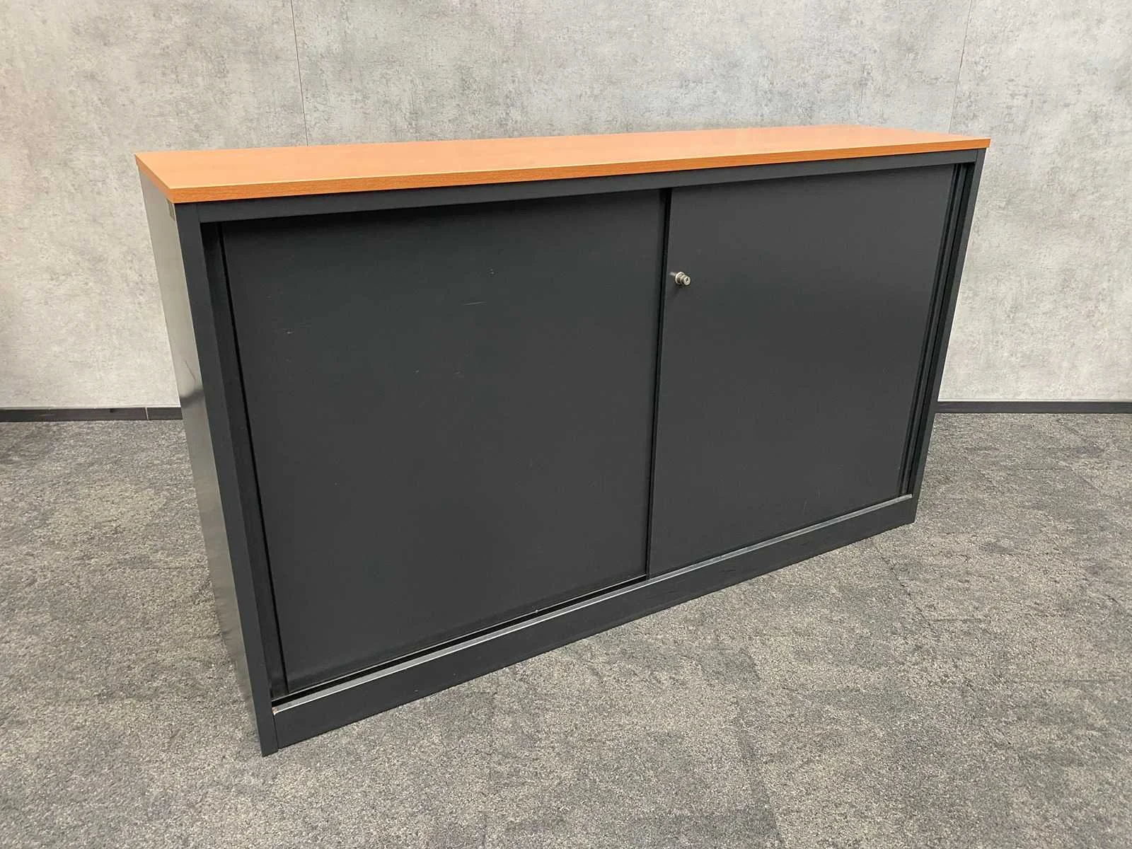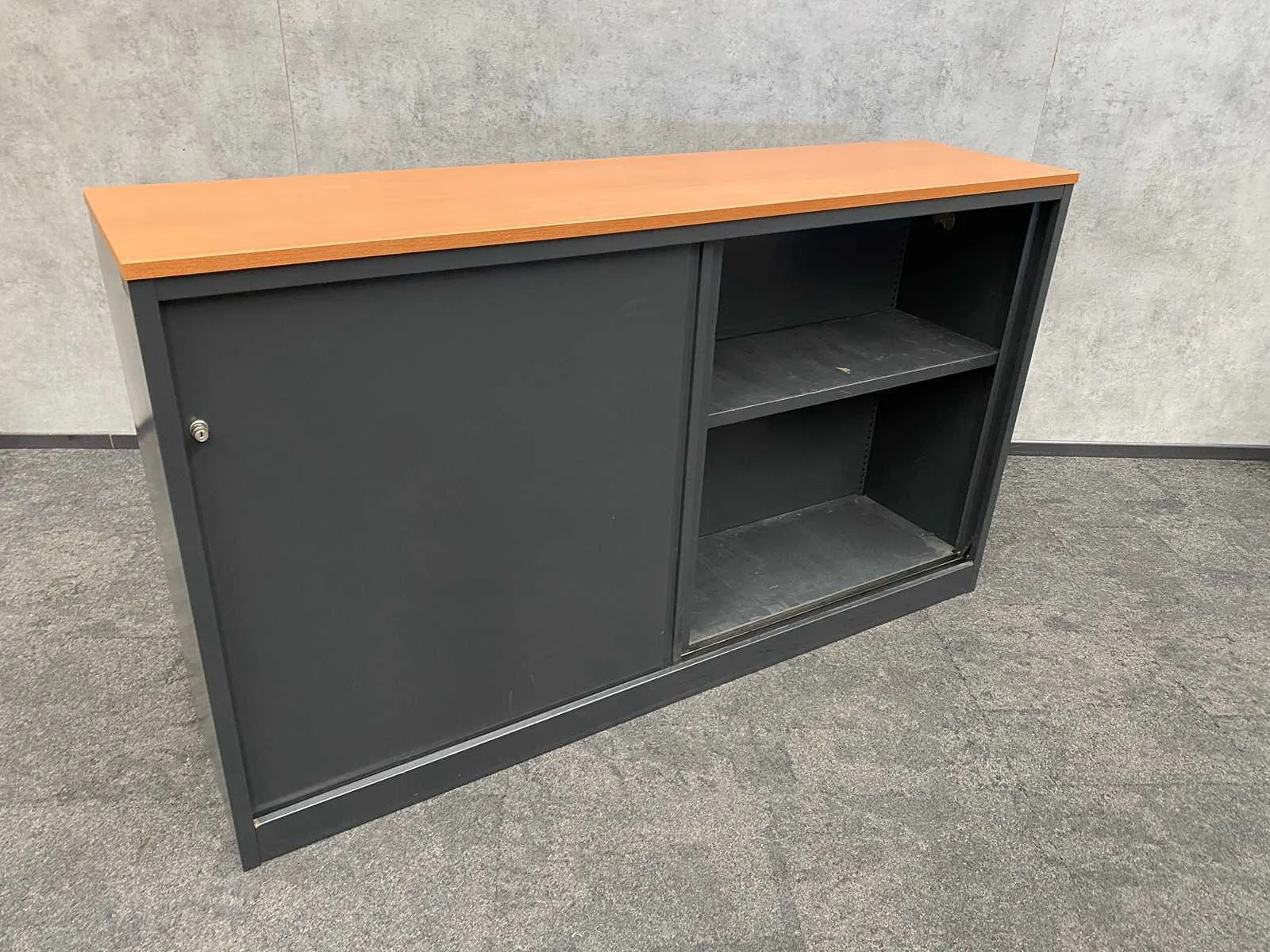 Zonder sleutel, met 2 verstelbare legborden Kleur: antraciet, hout Breedte: 180cm Hoogte: 104cm Diepte: 46cm Materiaal: metaal, melamine