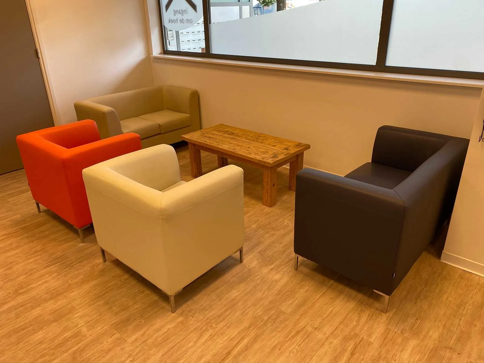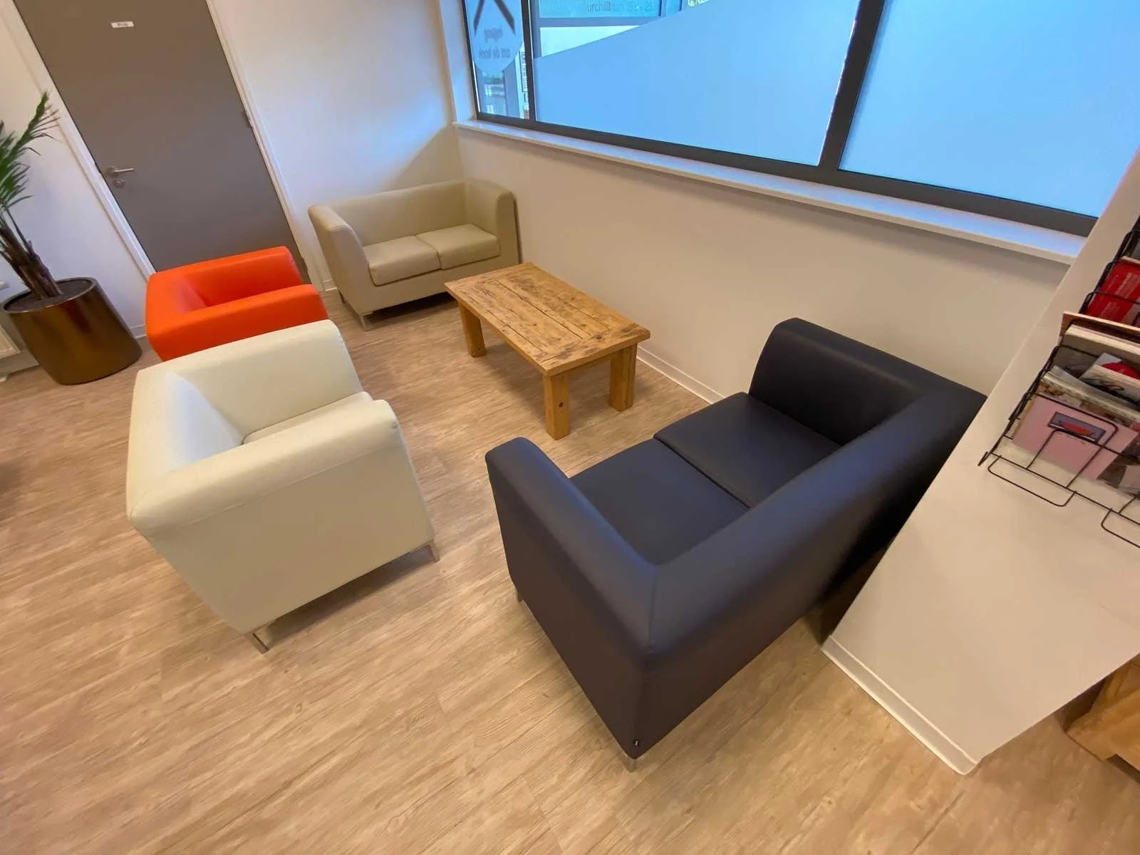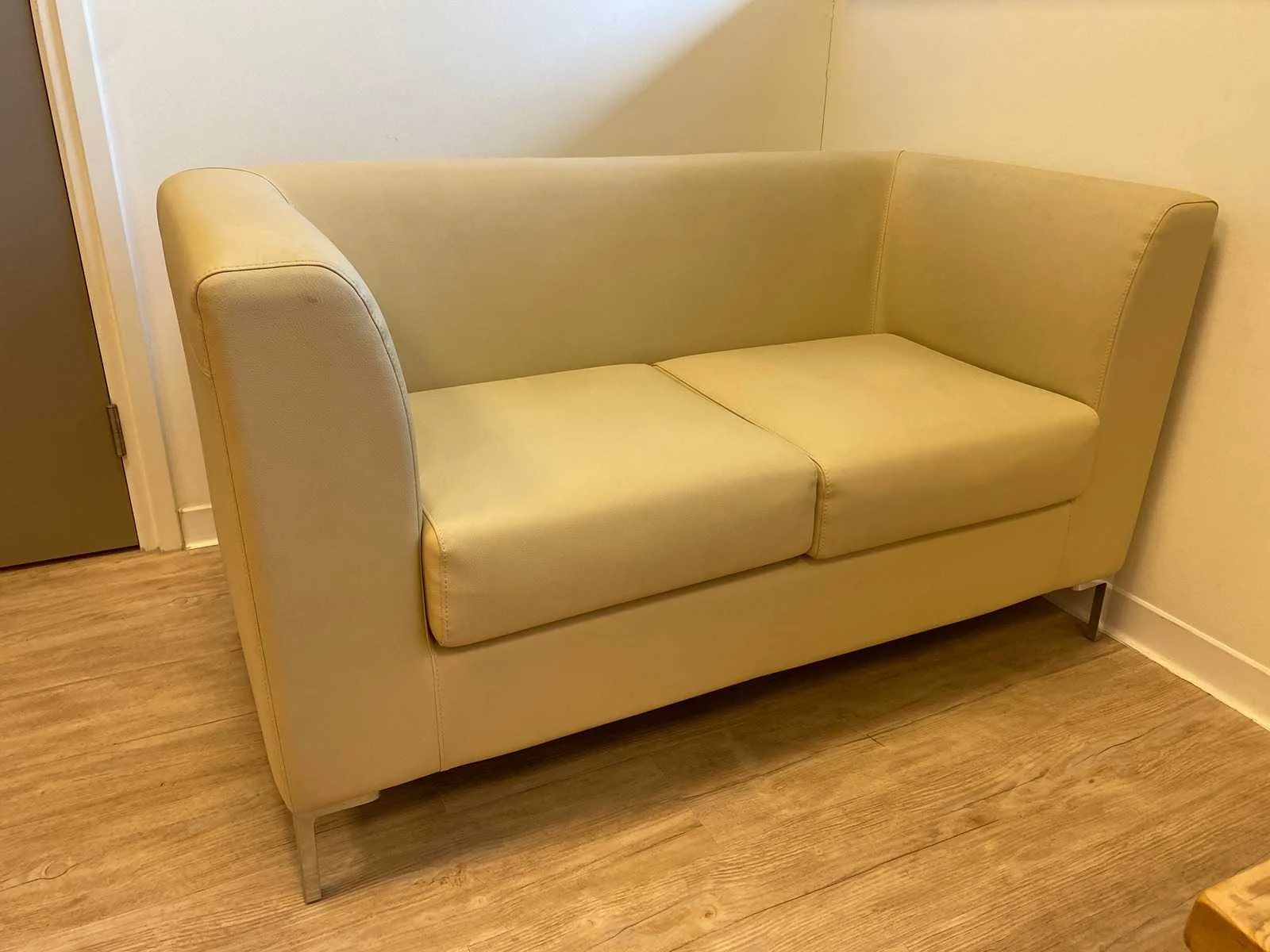 Afm. salontafel ca. hxbxd 46.5x120x60 cm. --- 2x fauteuil ca. hxbxd 73x83x66 cm. zithoogte ca. 45 cm. --- 2x sofa ca. hxbxd 73x130x66 cm.