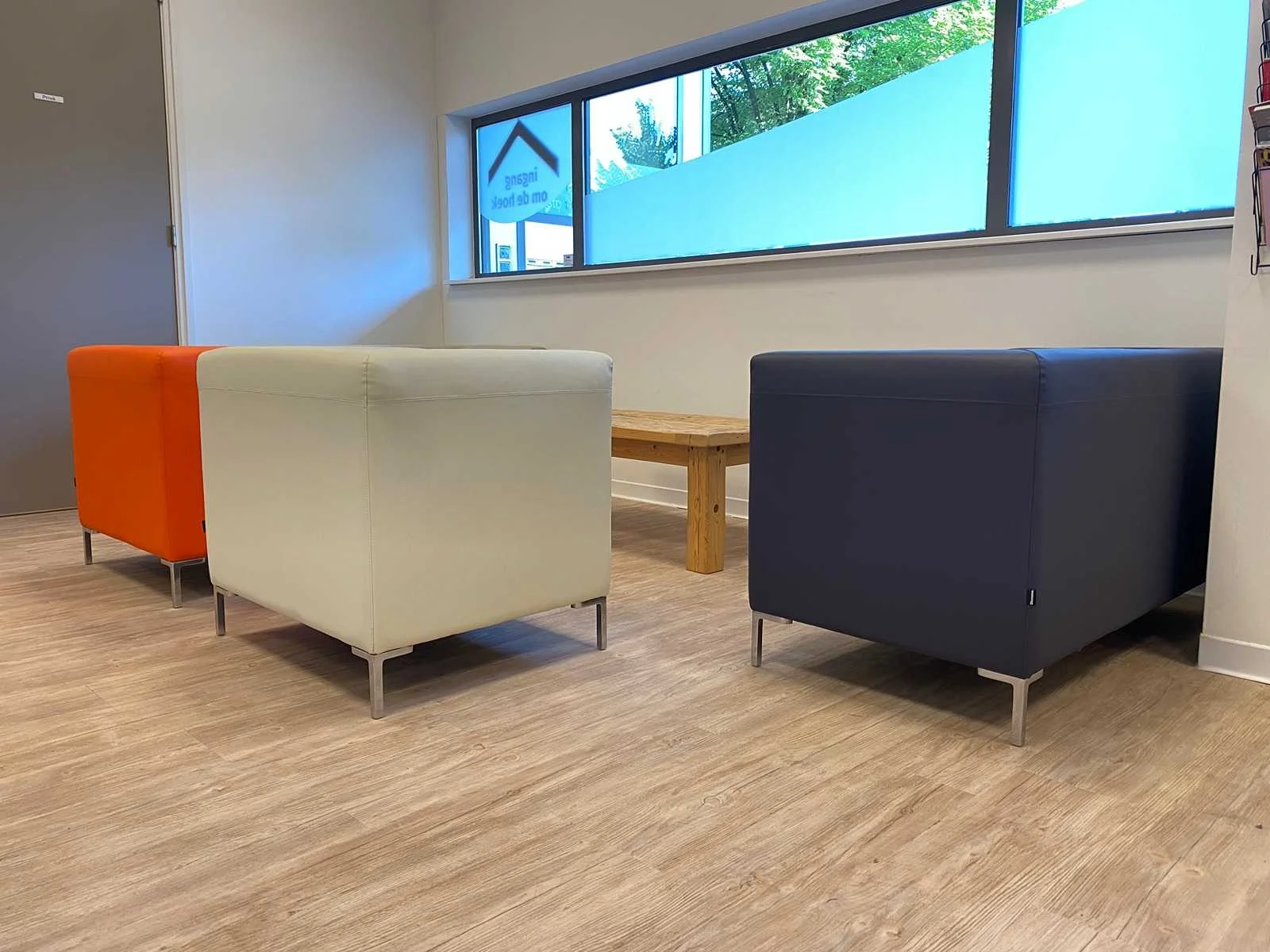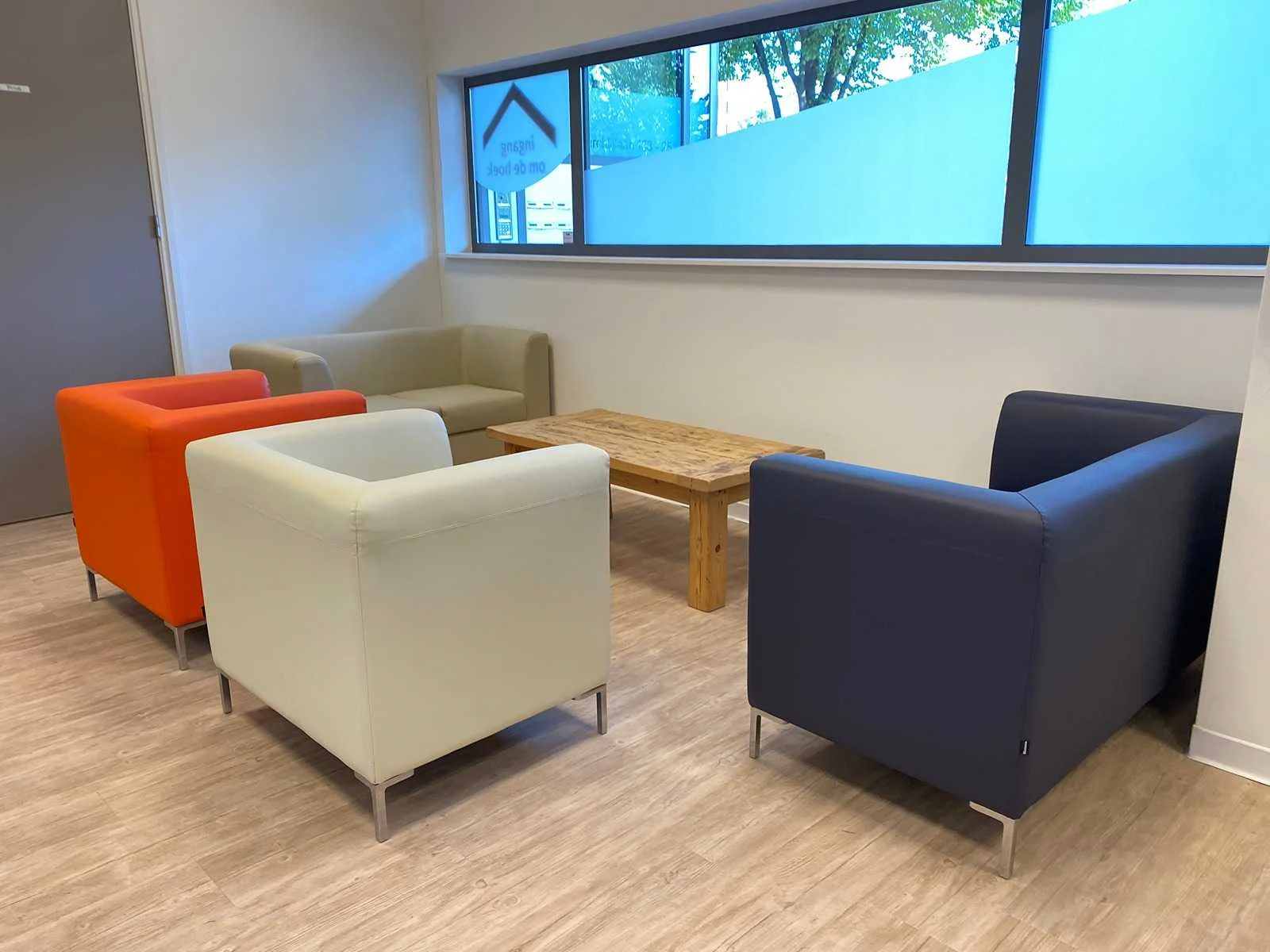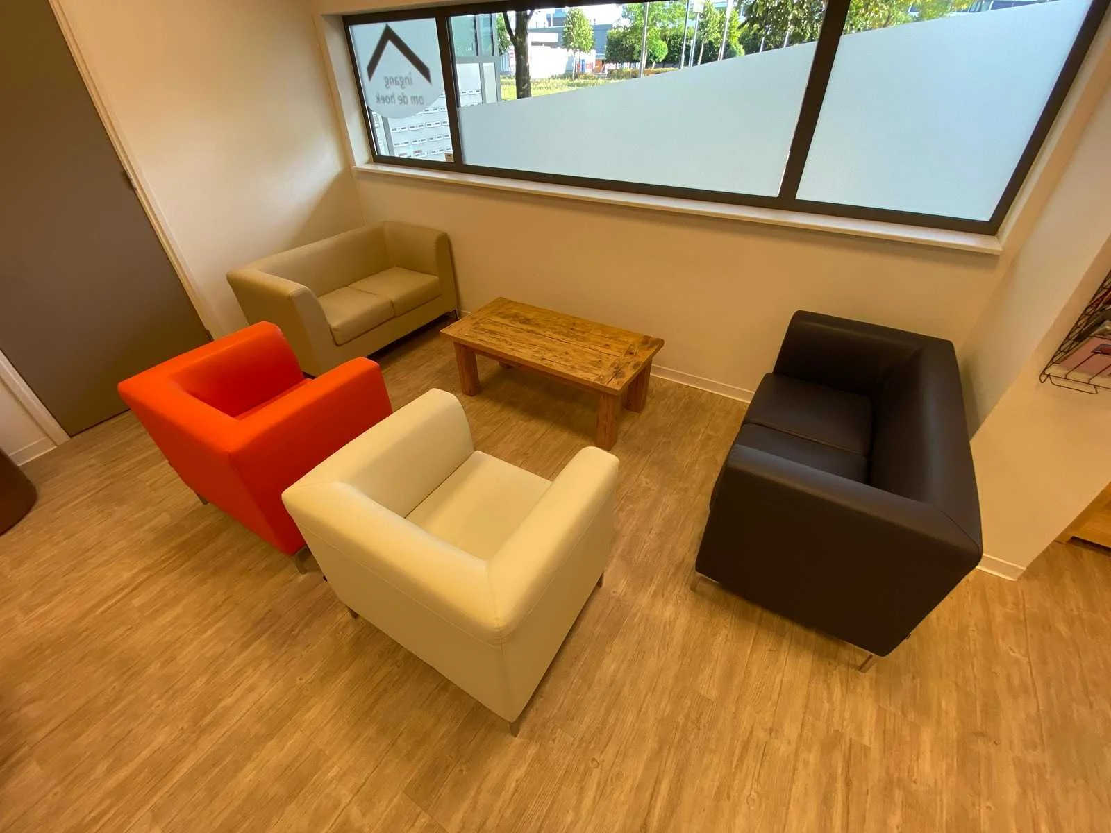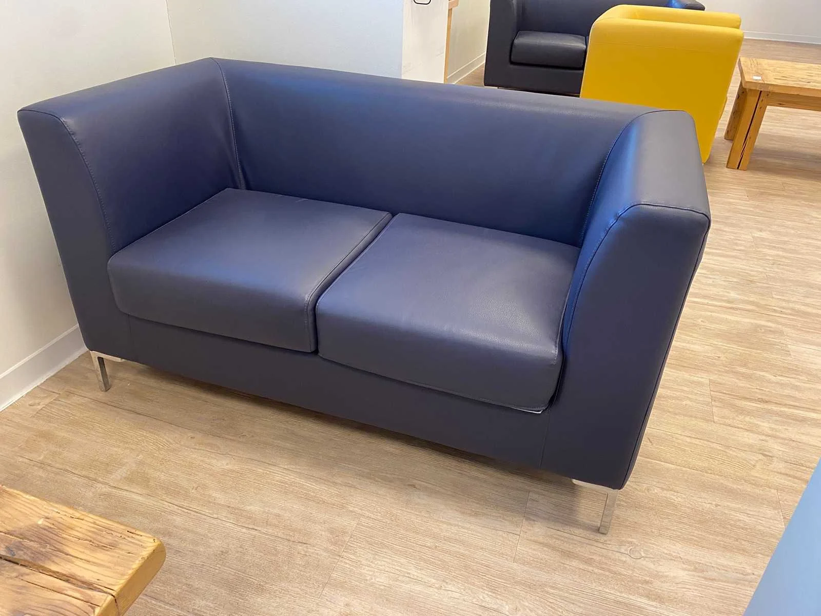 Afm. salontafel ca. hxbxd 46.5x120x60 cm. --- 2x fauteuil ca. hxbxd 73x83x66 cm. zithoogte ca. 45 cm. --- 2x sofa ca. hxbxd 73x130x66 cm.