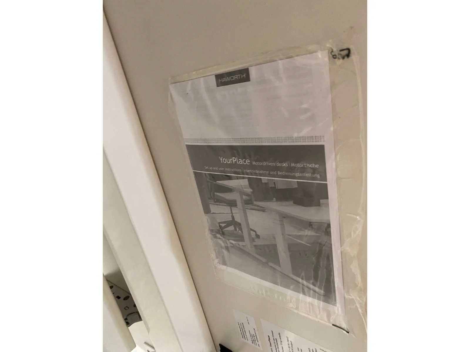 Hoogte ca. 72 tot 120 cm. Merk: Haworth Zit-sta: true Elektrisch verstelbaar: true Kleur: wit Breedte: 140cm Hoogte: 120cm Materiaal: metaal, melamine Diepte: 70cm