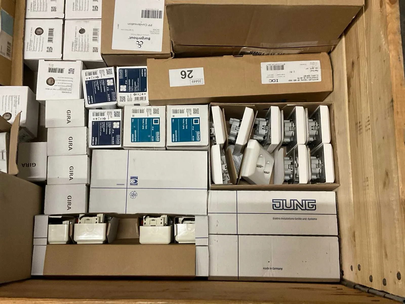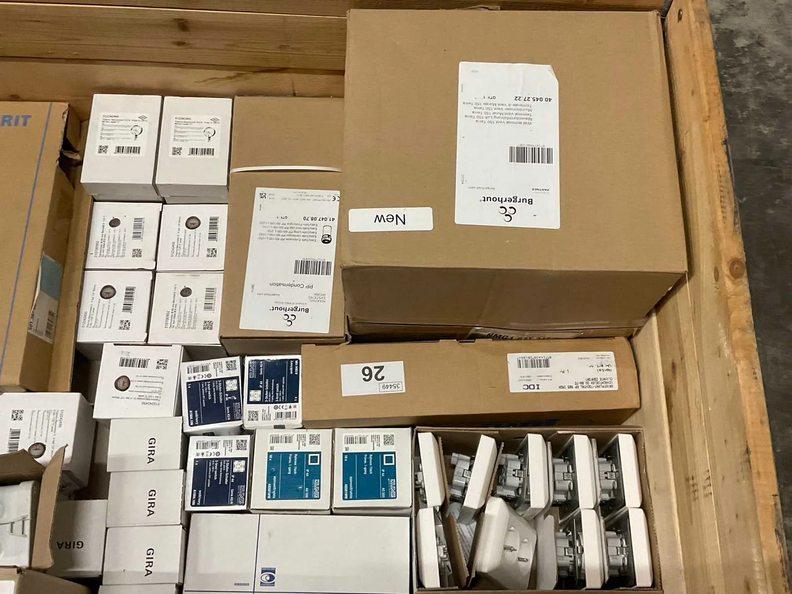 Bestaande uit: Oa Jung schakelmateriaal, Burgerhout artikelen, drukmeters, etc