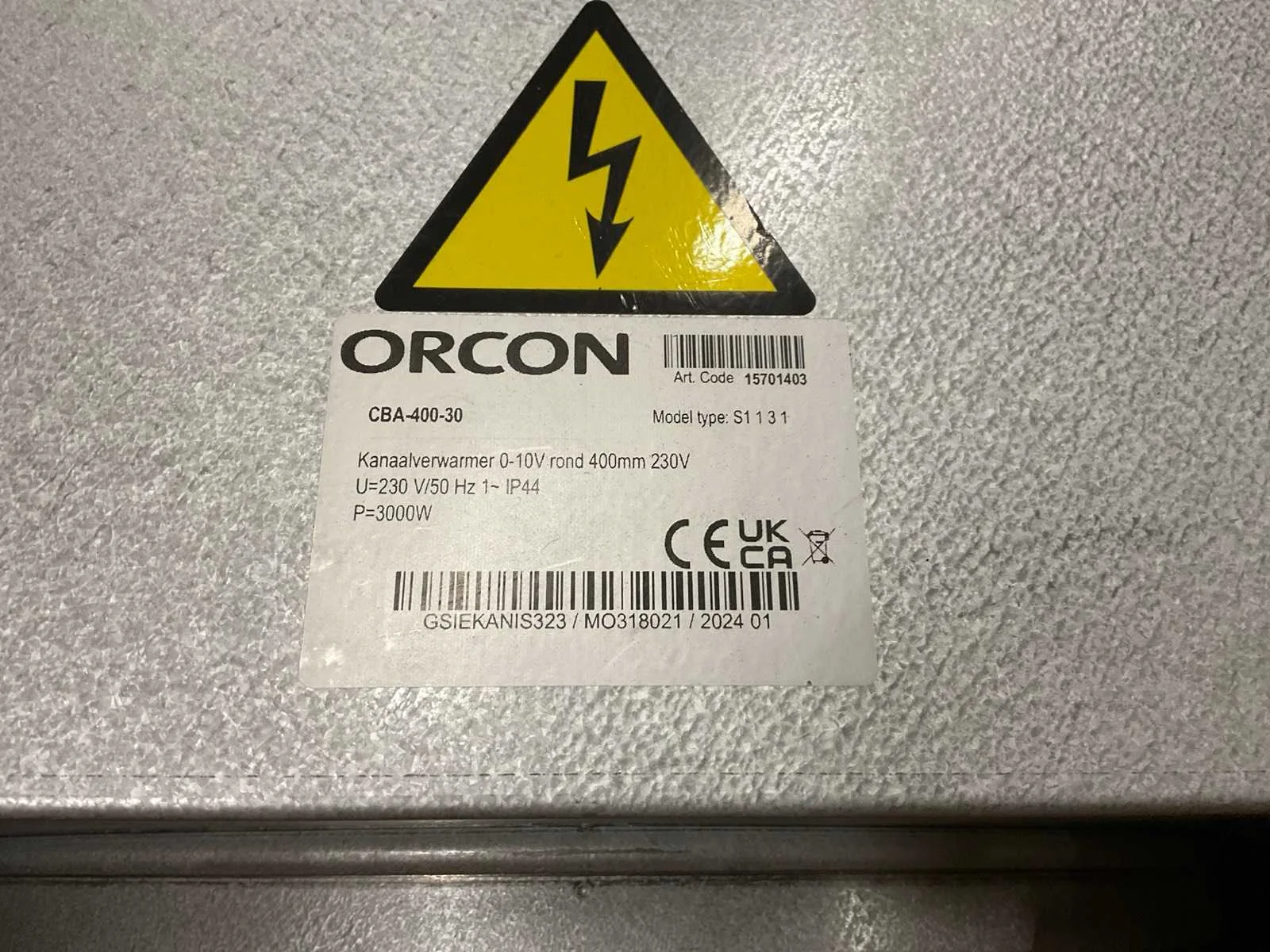 Orcon cba-400-30 kanaalverwarmer