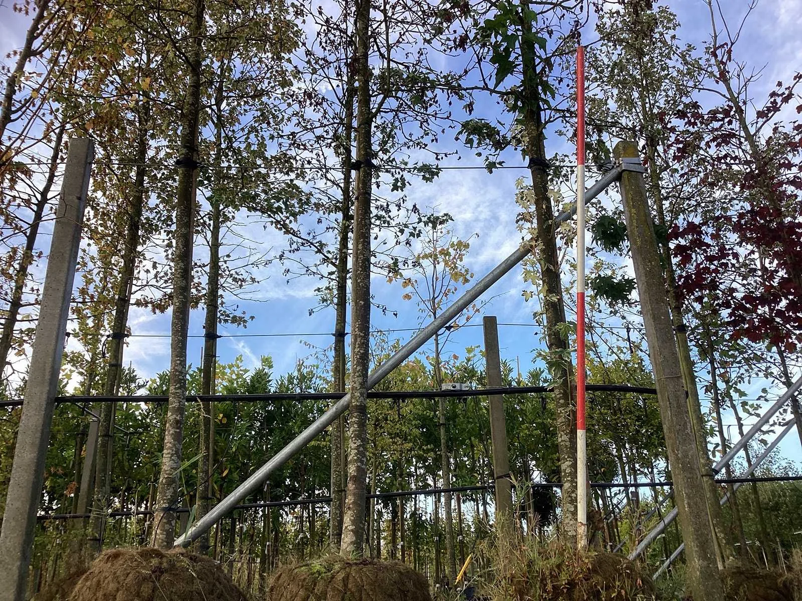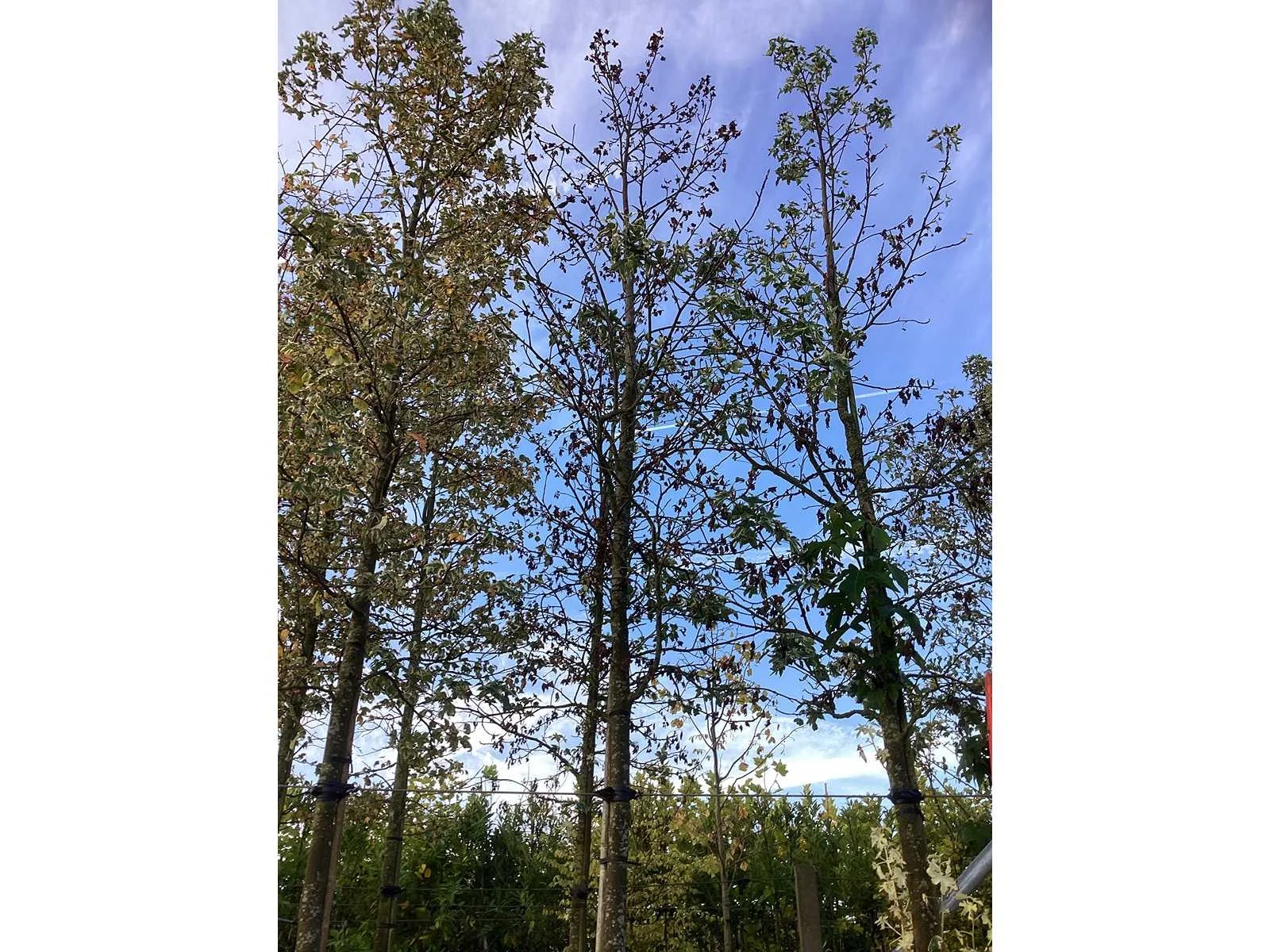 De kavels worden door ons verzameld en klaargelegd voor transport; Wilt u gebruik maken van de bezorgservice neem dan contact op via het emailadres info@groviatrees.com. Type: Bont bladerige Amberboom Latijnse benaming: Liquadambar styraciflua Silver King Hoogte ca.: 500cm Met kluit: true Stamdikte: 18cm