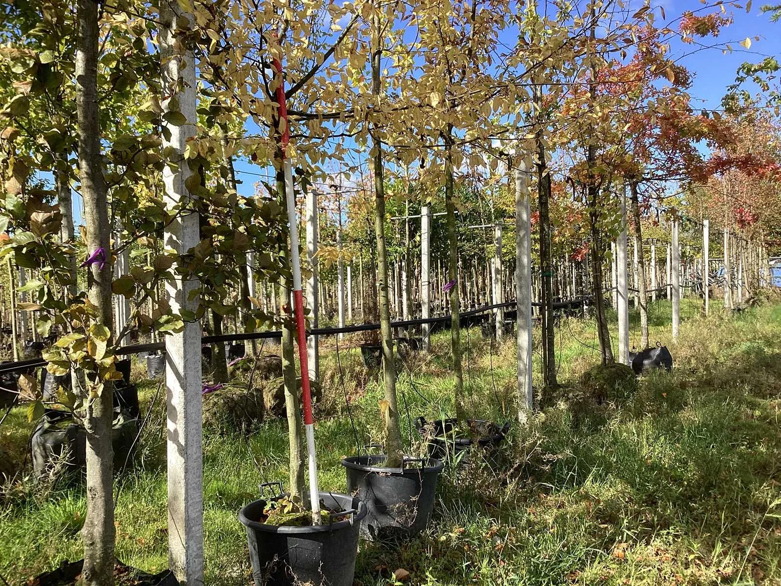 De kavels worden door ons verzameld en klaargelegd voor transport; Wilt u gebruik maken van de bezorgservice neem dan contact op via het emailadres info@groviatrees.com. Type: Haagbeuk Latijnse benaming: Carpinus Betulus Hoogte ca.: 400cm In pot: true Stamdikte: 12cm