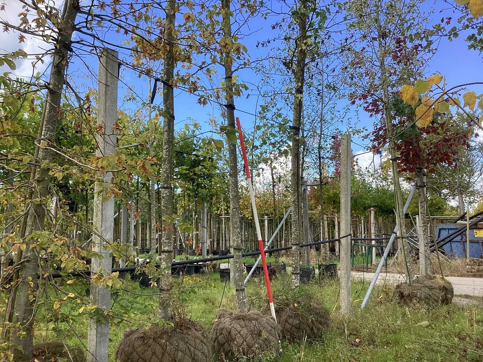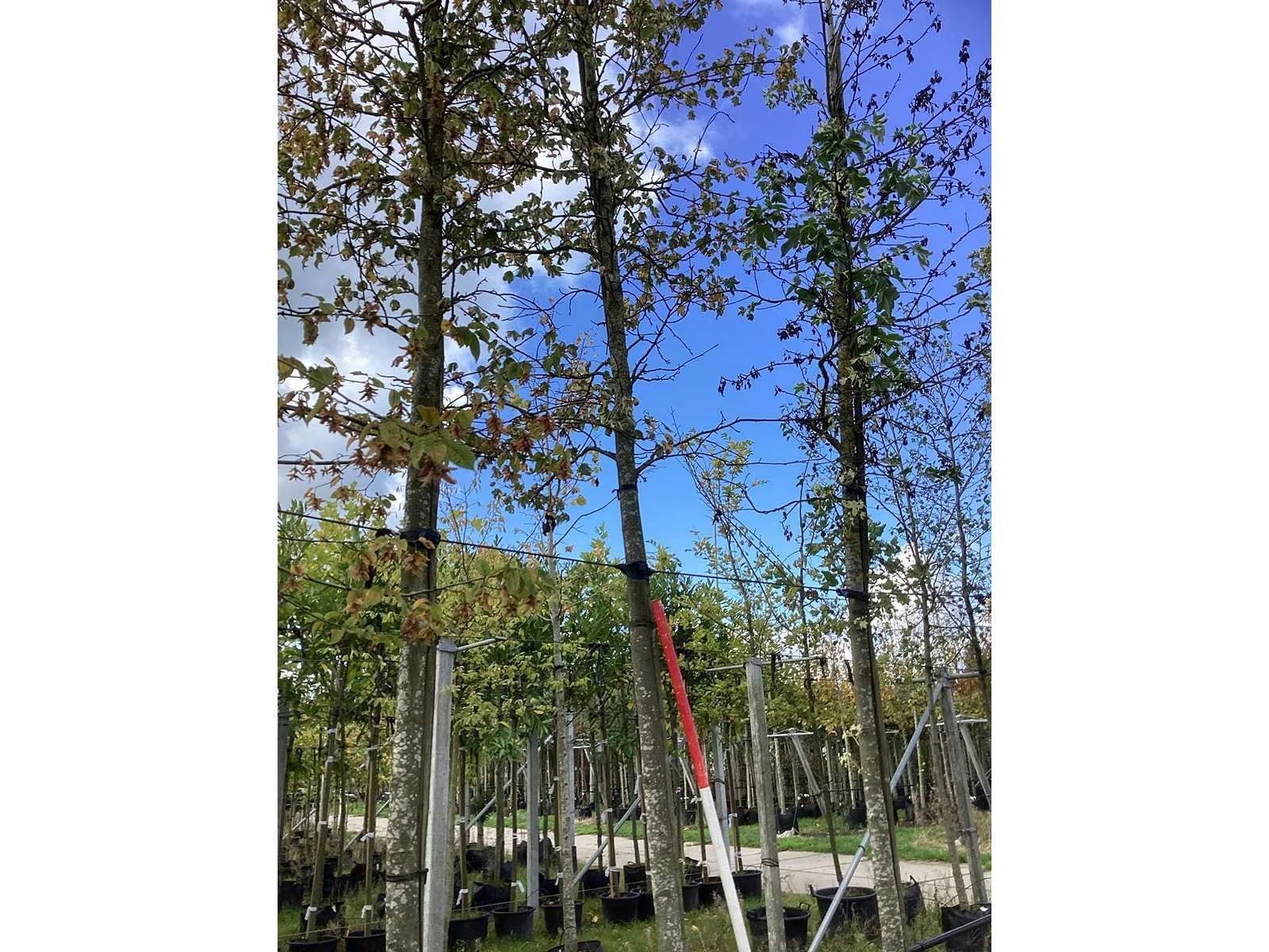 De kavels worden door ons verzameld en klaargelegd voor transport; Wilt u gebruik maken van de bezorgservice neem dan contact op via het emailadres info@groviatrees.com. Type: Bont bladerige Amberboom Latijnse benaming: Liquadambar Silver King Met kluit: true Stamdikte: 19cm