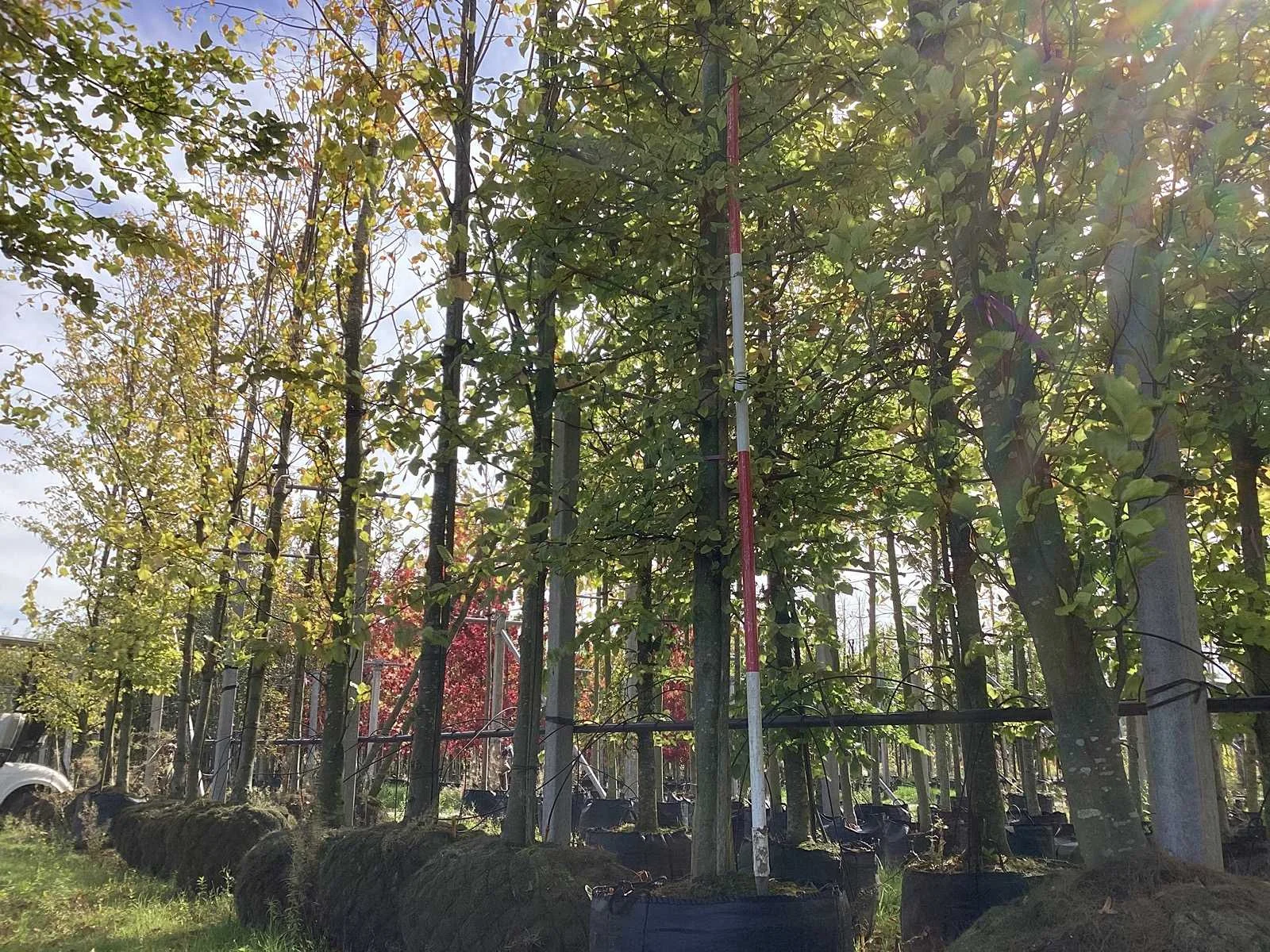 De kavels worden door ons verzameld en klaargelegd voor transport; Wilt u gebruik maken van de bezorgservice neem dan contact op via het emailadres info@groviatrees.com. Type: Haagbeuk Latijnse benaming: Carpinus Betulus Hoogte ca.: 500cm Met kluit: true Stamdikte: 19cm