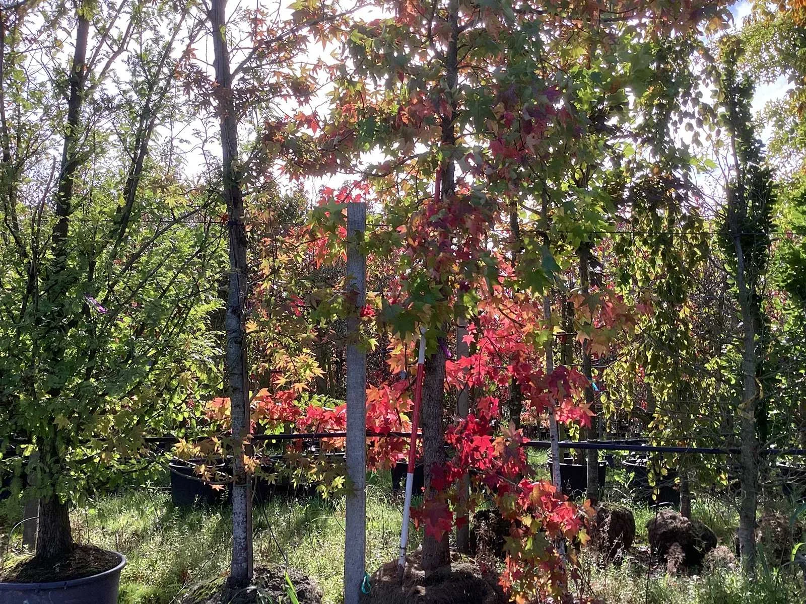 De kavels worden door ons verzameld en klaargelegd voor transport; Wilt u gebruik maken van de bezorgservice neem dan contact op via het emailadres info@groviatrees.com. Type: Amberboom Latijnse benaming: Liquadambar styraciflua Hoogte ca.: 600cm Met kluit: true Stamdikte: 30cm