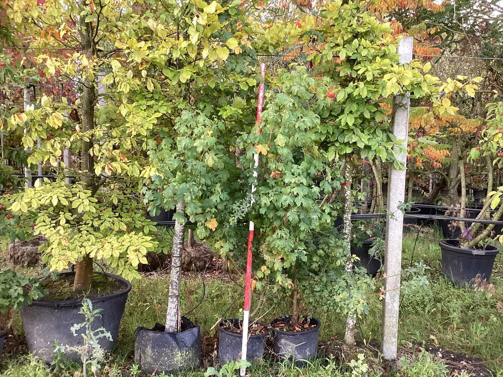 Een prachtige struik voor in uw tuin, heeft een mooie vertakking en in de zomer frisgroen blad. De kavels worden door ons verzameld en klaargelegd voor transport; Wilt u gebruik maken van de bezorgservice neem dan contact op via het emailadres info@groviatrees.com. Type: Veldesdoorn Latijnse benaming: Acer Campestre Hoogte ca.: 200cm In pot: true Stamdikte: 6cm