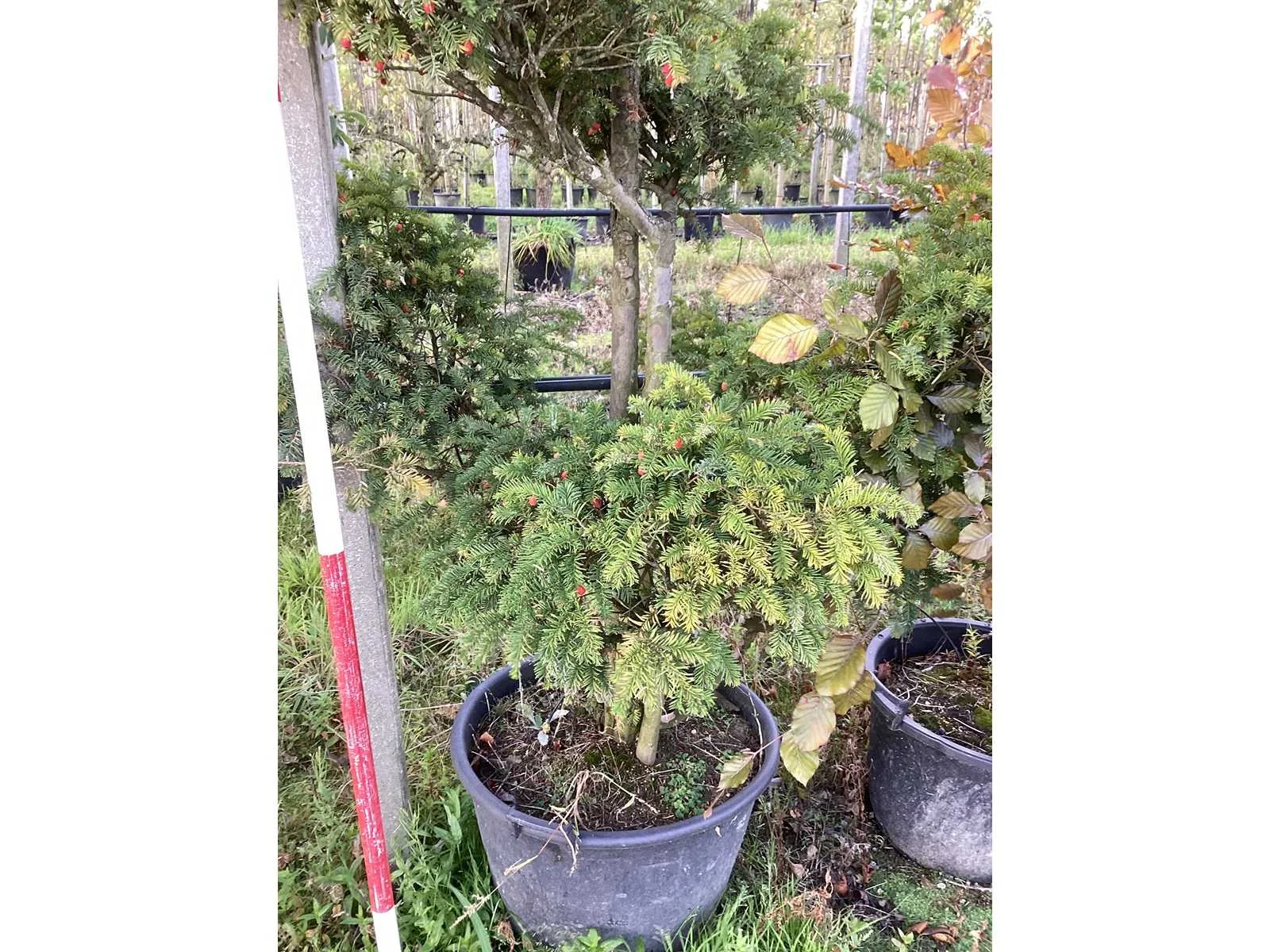 De kavels worden door ons verzameld en klaargelegd voor transport; Wilt u gebruik maken van de bezorgservice neem dan contact op via het emailadres info@groviatrees.com. Type: Venijnboom Latijnse benaming: Taxus Baccata Hoogte ca.: 200cm In pot: true Stamdikte: 12cm