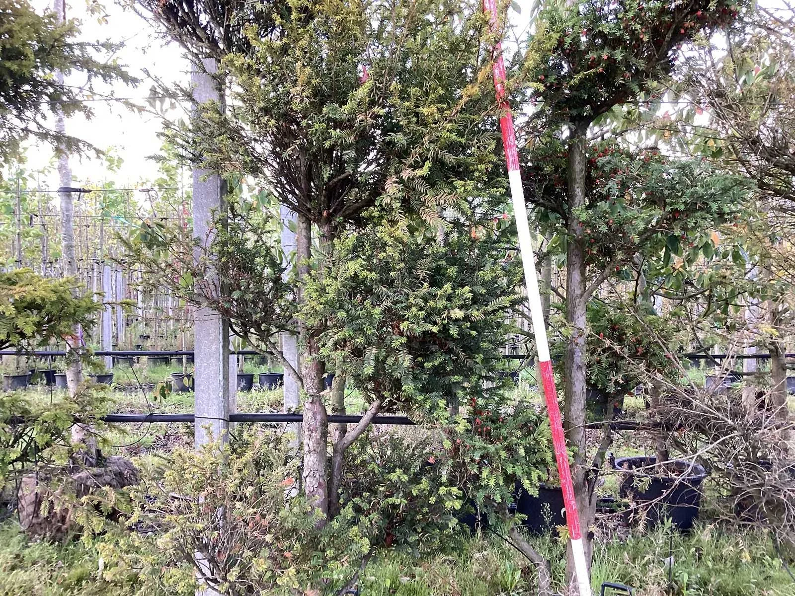 De kavels worden door ons verzameld en klaargelegd voor transport; Wilt u gebruik maken van de bezorgservice neem dan contact op via het emailadres info@groviatrees.com. Type: Venijnboom Latijnse benaming: Taxus baccata Hoogte ca.: 250cm In pot: true Stamdikte: 12cm