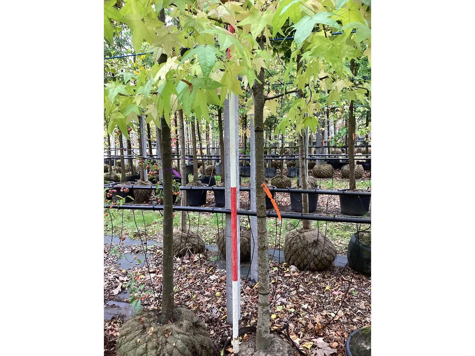 De kavels worden door ons verzameld en klaargelegd voor transport; Wilt u gebruik maken van de bezorgservice neem dan contact op via het emailadres info@groviatrees.com. Type: Amberboom Latijnse benaming: Liquadambar styraciflua Hoogte ca.: 600cm Met kluit: true Stamdikte: 17cm