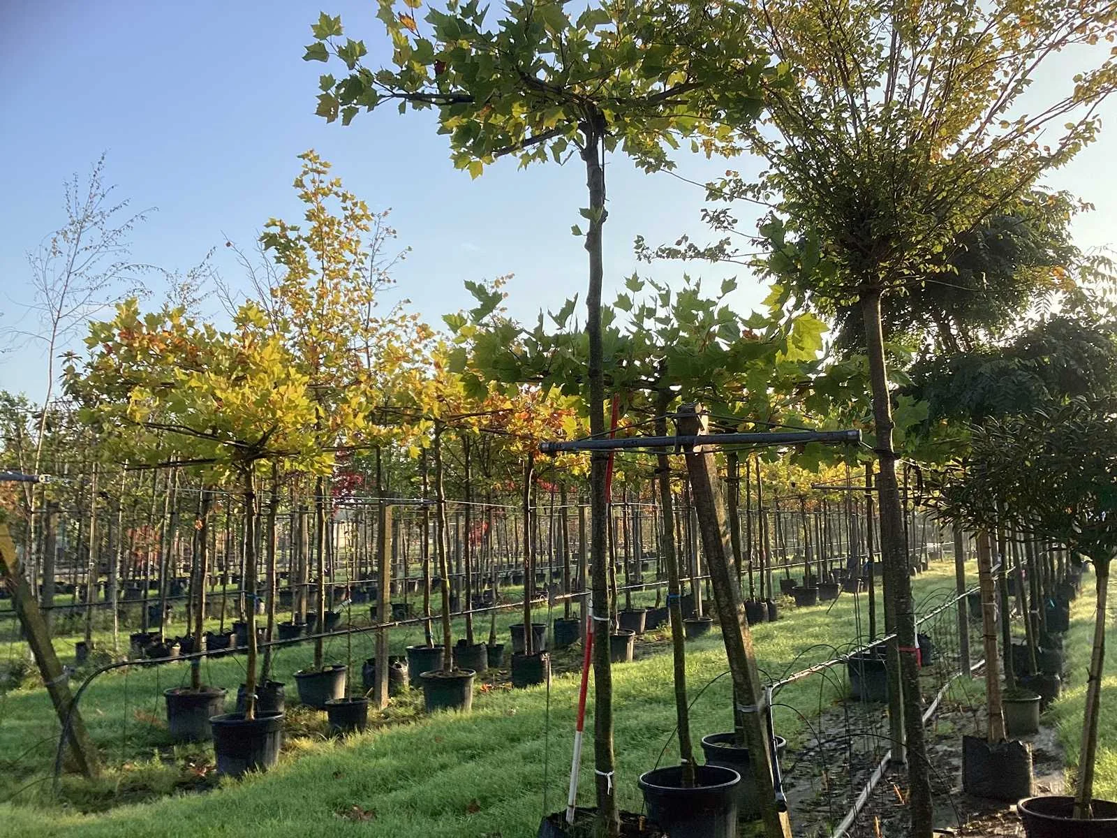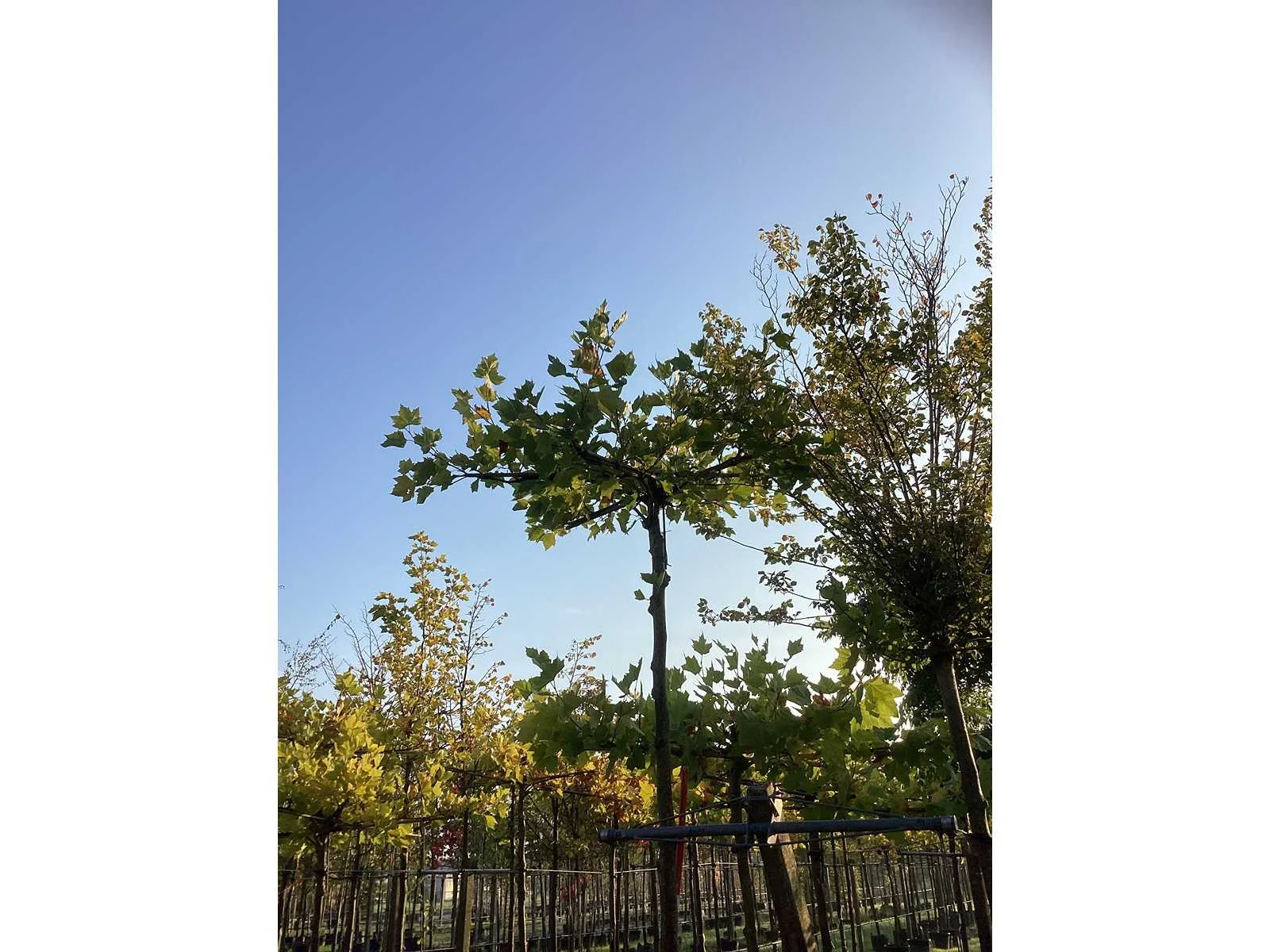 Deze dakplatanen zijn gedakt op 300cm, ideaal voor uw tuin, boven uw terras of als beschutting voor de zon. De kavels worden door ons verzameld en klaargelegd voor transport; Wilt u gebruik maken van de bezorgservice neem dan contact op via het emailadres info@groviatrees.com Type: Plataan Latijnse benaming: Platanus Hispanica Hoogte ca.: 350cm In pot: true Stamdikte: 20cm