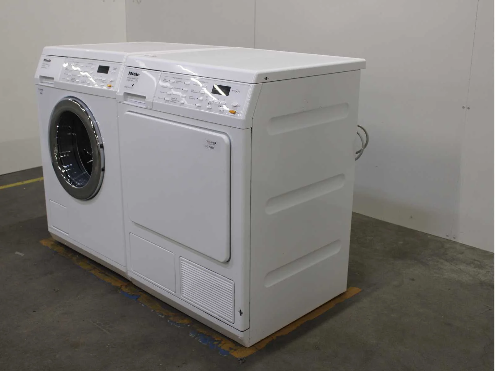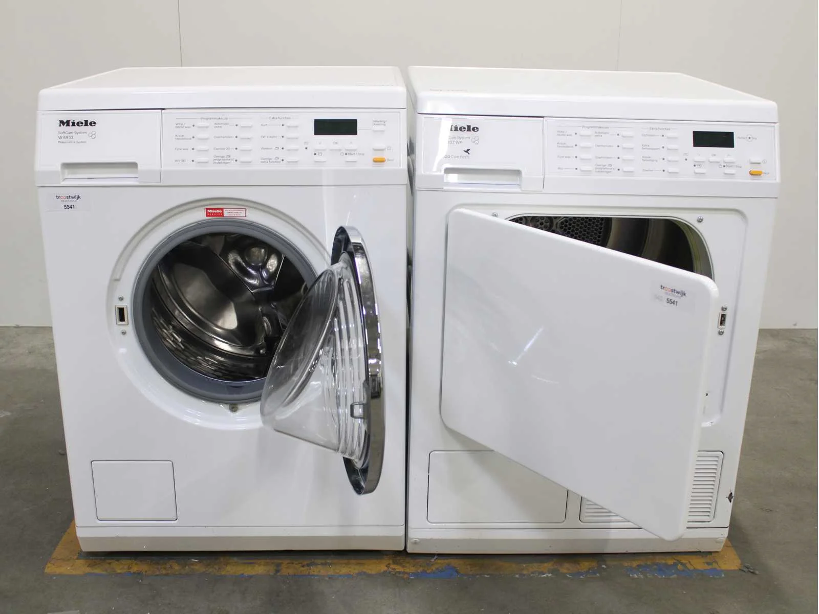 Deze wasmachine en wasdroger komen uit een partij jong gebruikt A-Merk witgoed. De machines zijn volledig getest, gereinigd en indien nodig gerepareerd. Houdt er rekening mee dat de machines lichte gebruikssporen kunnen hebben. Wasmachines en wasdrogers hebben vaak standaard afmetingen. Hoogte 85cm, Breedte 60cm en Diepte 60 tot 70cm, incl. uitstekende slangen e.d. aan de achterzijde. Als de machine vrij komt te staan is de afmeting minder relevant. Wil je de machine in een nis plaatsen of inbouwen? Controleer dan de exacte afmetingen op basis van het aangeboden merk en model/type. Within 7 days Merk: Miele Serienummer: W5933 en T8937WP