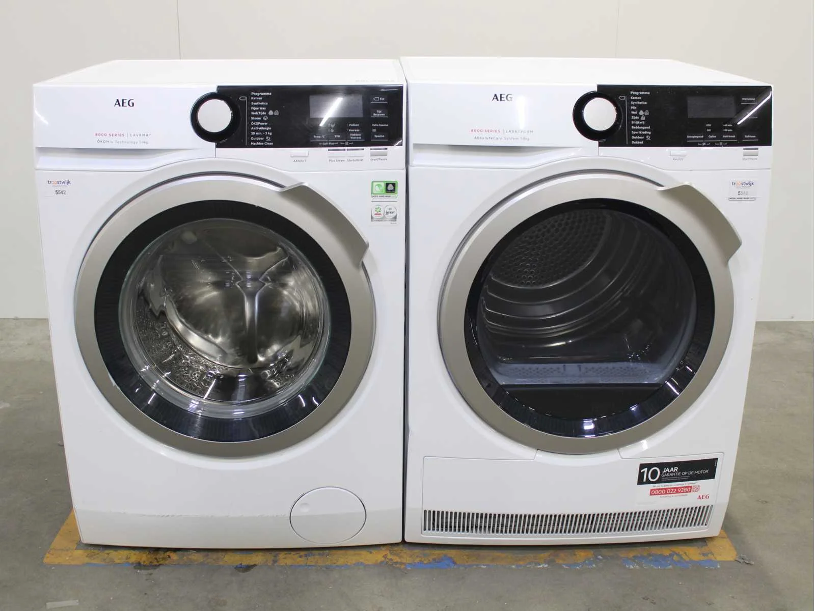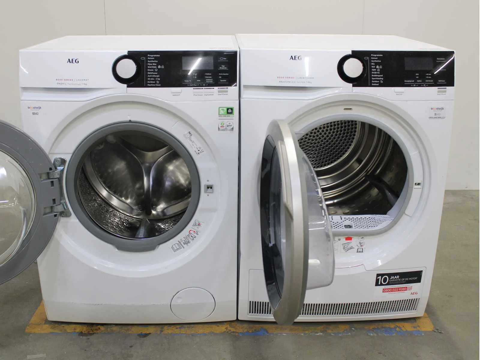 Deze wasmachine en wasdroger komen uit een partij jong gebruikt A-Merk witgoed. De machines zijn volledig getest, gereinigd en indien nodig gerepareerd. Houdt er rekening mee dat de machines lichte gebruikssporen kunnen hebben. Wasmachines en wasdrogers hebben vaak standaard afmetingen. Hoogte 85cm, Breedte 60cm en Diepte 60 tot 70cm, incl. uitstekende slangen e.d. aan de achterzijde. Als de machine vrij komt te staan is de afmeting minder relevant. Wil je de machine in een nis plaatsen of inbouwen? Controleer dan de exacte afmetingen op basis van het aangeboden merk en model/type. Within 7 days Merk: AEG Serienummer: L8FB86ES en T8DB86ES