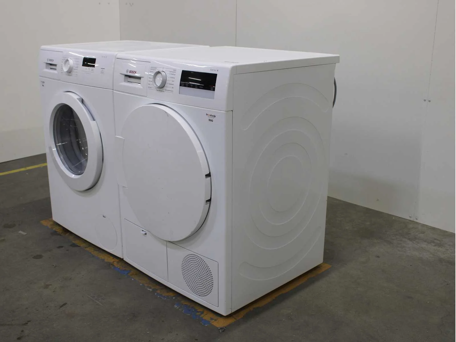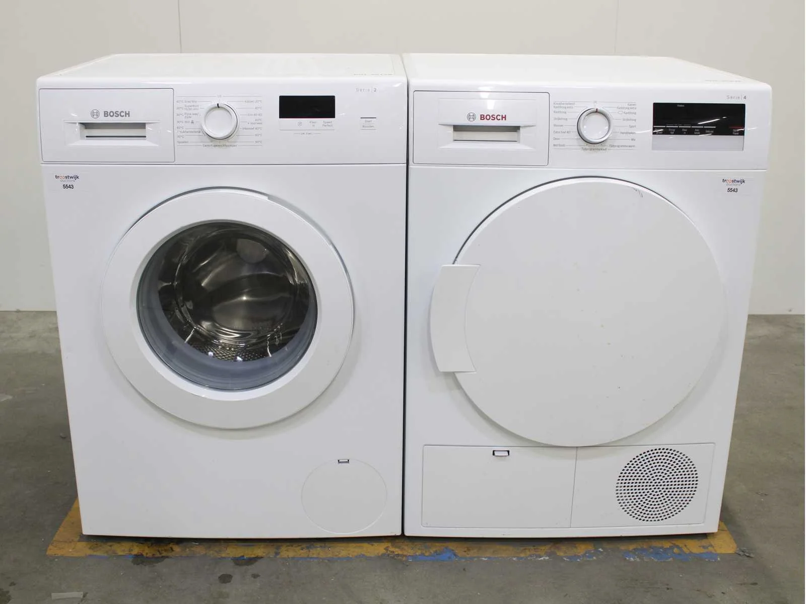 Deze wasmachine en wasdroger komen uit een partij jong gebruikt A-Merk witgoed. De machines zijn volledig getest, gereinigd en indien nodig gerepareerd. Houdt er rekening mee dat de machines lichte gebruikssporen kunnen hebben. Wasmachines en wasdrogers hebben vaak standaard afmetingen. Hoogte 85cm, Breedte 60cm en Diepte 60 tot 70cm, incl. uitstekende slangen e.d. aan de achterzijde. Als de machine vrij komt te staan is de afmeting minder relevant. Wil je de machine in een nis plaatsen of inbouwen? Controleer dan de exacte afmetingen op basis van het aangeboden merk en model/type. Within 7 days Merk: Bosch Serienummer: WAJ28071NL en WTH83200NL