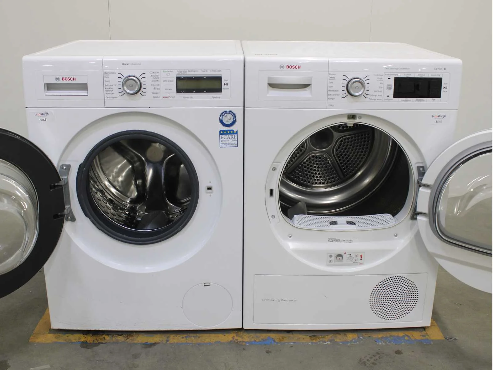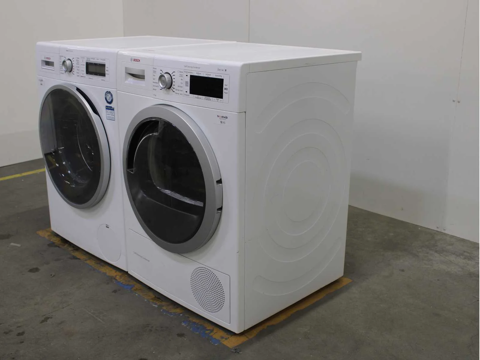 Deze wasmachine en wasdroger komen uit een partij jong gebruikt A-Merk witgoed. De machines zijn volledig getest, gereinigd en indien nodig gerepareerd. Houdt er rekening mee dat de machines lichte gebruikssporen kunnen hebben. Wasmachines en wasdrogers hebben vaak standaard afmetingen. Hoogte 85cm, Breedte 60cm en Diepte 60 tot 70cm, incl. uitstekende slangen e.d. aan de achterzijde. Als de machine vrij komt te staan is de afmeting minder relevant. Wil je de machine in een nis plaatsen of inbouwen? Controleer dan de exacte afmetingen op basis van het aangeboden merk en model/type. Within 7 days Merk: Bosch Serienummer: WAY32541NL/39 FD 9606 200679 en WTW87562NL