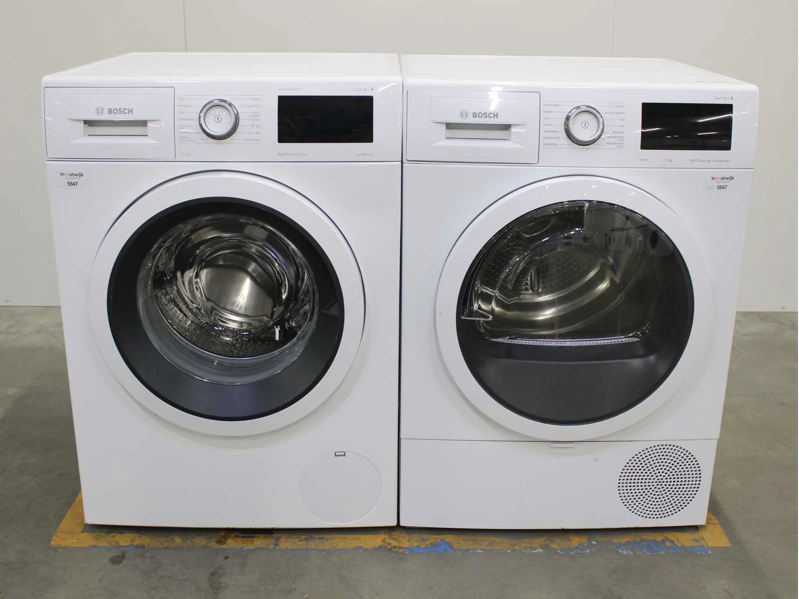 Deze wasmachine en wasdroger komen uit een partij jong gebruikt A-Merk witgoed. De machines zijn volledig getest, gereinigd en indien nodig gerepareerd. Houdt er rekening mee dat de machines lichte gebruikssporen kunnen hebben. Wasmachines en wasdrogers hebben vaak standaard afmetingen. Hoogte 85cm, Breedte 60cm en Diepte 60 tot 70cm, incl. uitstekende slangen e.d. aan de achterzijde. Als de machine vrij komt te staan is de afmeting minder relevant. Wil je de machine in een nis plaatsen of inbouwen? Controleer dan de exacte afmetingen op basis van het aangeboden merk en model/type. Within 7 days Merk: Bosch Serienummer: WAT28542NL/56 FD 9909 101239 en WTU876C0NL