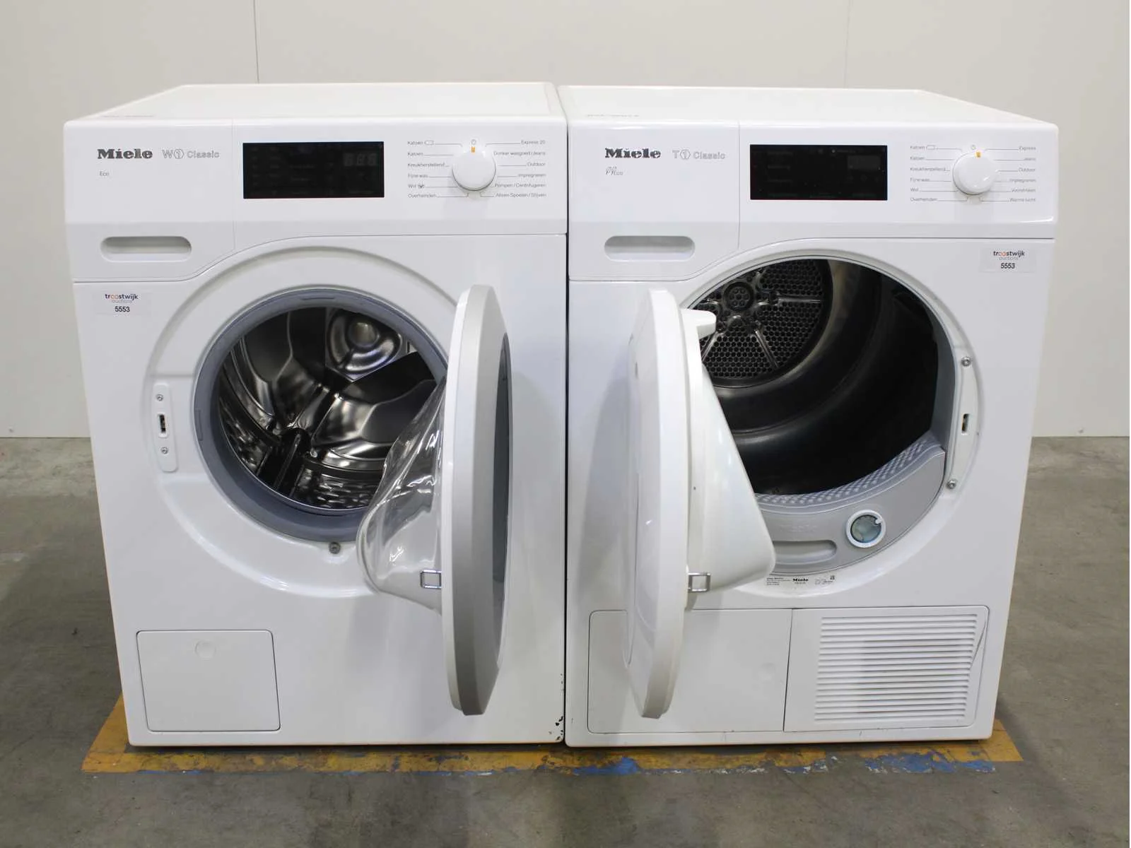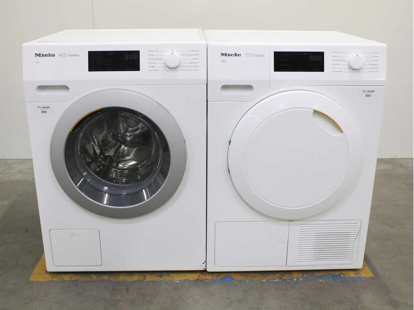 Deze wasmachine en wasdroger komen uit een partij jong gebruikt A-Merk witgoed. De machines zijn volledig getest, gereinigd en indien nodig gerepareerd. Houdt er rekening mee dat de machines lichte gebruikssporen kunnen hebben. Wasmachines en wasdrogers hebben vaak standaard afmetingen. Hoogte 85cm, Breedte 60cm en Diepte 60 tot 70cm, incl. uitstekende slangen e.d. aan de achterzijde. Als de machine vrij komt te staan is de afmeting minder relevant. Wil je de machine in een nis plaatsen of inbouwen? Controleer dan de exacte afmetingen op basis van het aangeboden merk en model/type. Within 7 days Merk: Miele Serienummer: WDB030 en TDB130WP