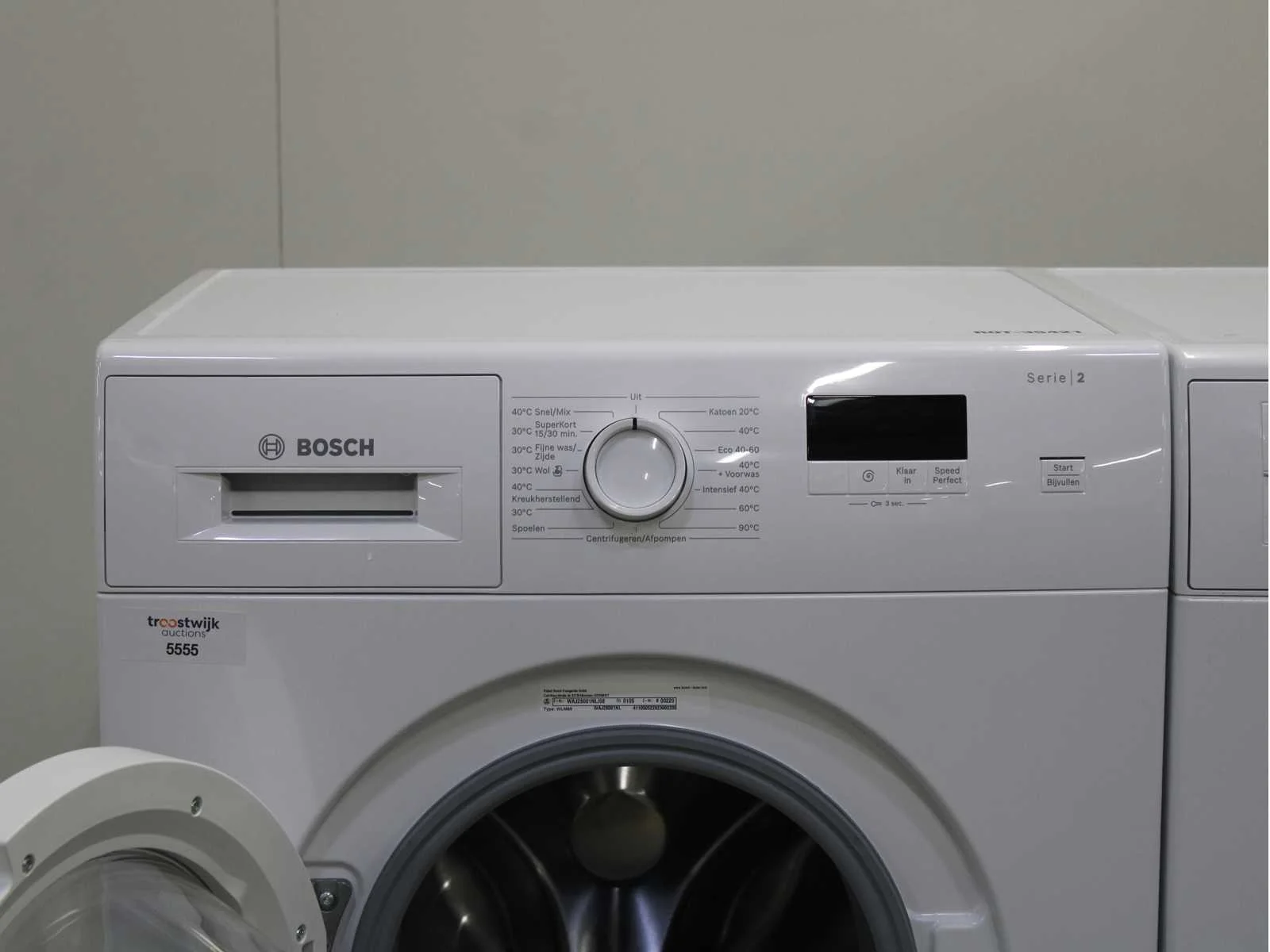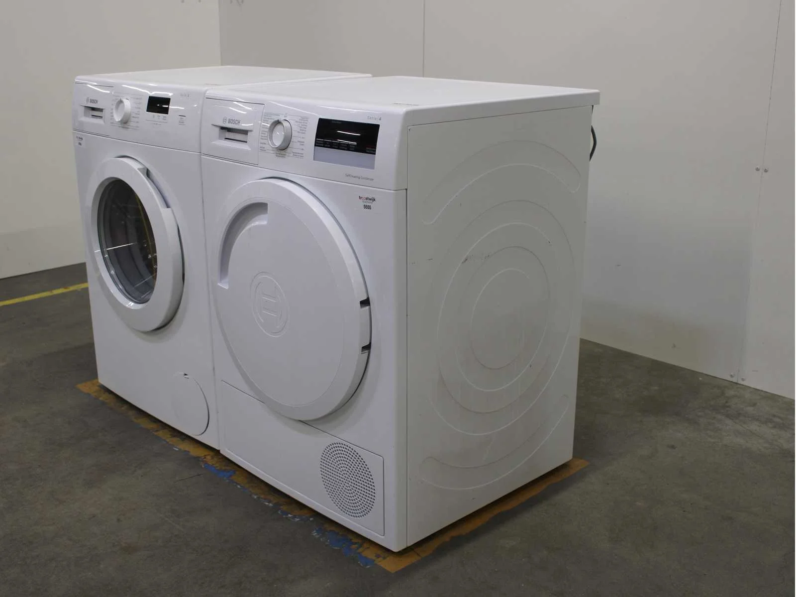 Deze wasmachine en wasdroger komen uit een partij jong gebruikt A-Merk witgoed. De machines zijn volledig getest, gereinigd en indien nodig gerepareerd. Houdt er rekening mee dat de machines lichte gebruikssporen kunnen hebben. Wasmachines en wasdrogers hebben vaak standaard afmetingen. Hoogte 85cm, Breedte 60cm en Diepte 60 tot 70cm, incl. uitstekende slangen e.d. aan de achterzijde. Als de machine vrij komt te staan is de afmeting minder relevant. Wil je de machine in een nis plaatsen of inbouwen? Controleer dan de exacte afmetingen op basis van het aangeboden merk en model/type. Within 7 days Merk: Bosch Serienummer: WAJ28001NL en WTM85263FG/06