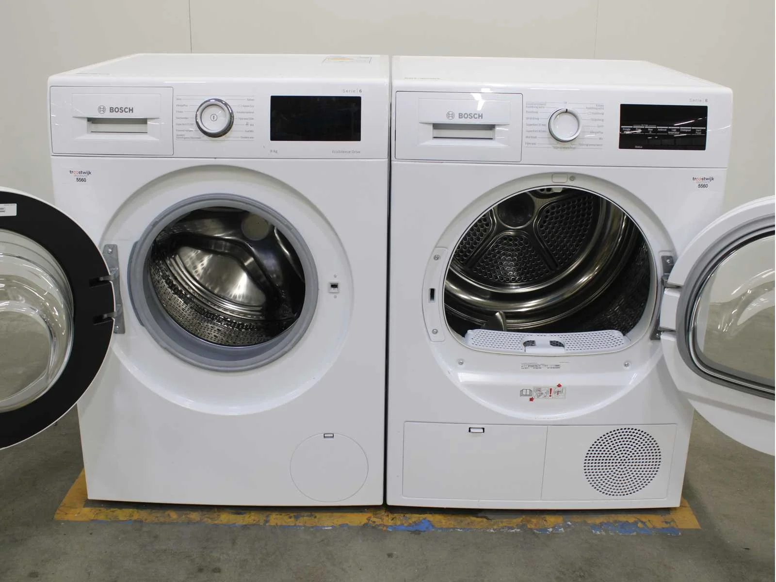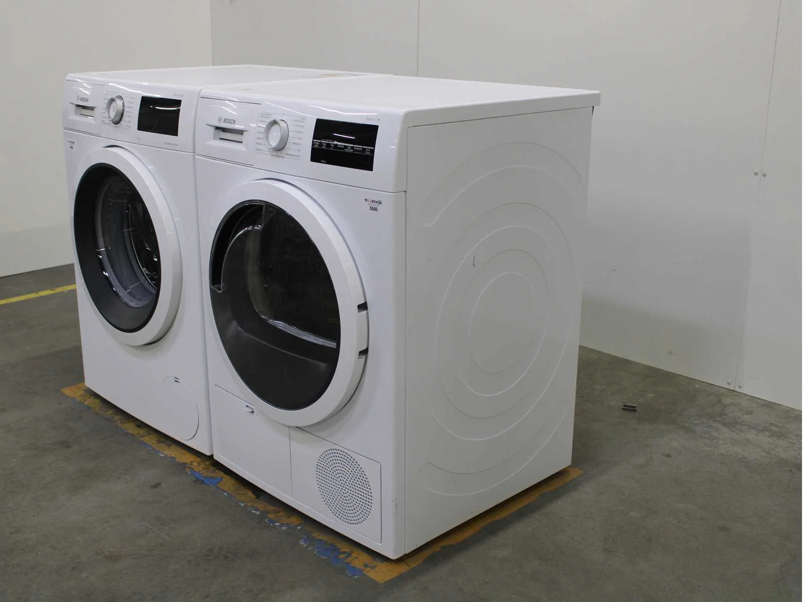 Deze wasmachine en wasdroger komen uit een partij jong gebruikt A-Merk witgoed. De machines zijn volledig getest, gereinigd en indien nodig gerepareerd. Houdt er rekening mee dat de machines lichte gebruikssporen kunnen hebben. Wasmachines en wasdrogers hebben vaak standaard afmetingen. Hoogte 85cm, Breedte 60cm en Diepte 60 tot 70cm, incl. uitstekende slangen e.d. aan de achterzijde. Als de machine vrij komt te staan is de afmeting minder relevant. Wil je de machine in een nis plaatsen of inbouwen? Controleer dan de exacte afmetingen op basis van het aangeboden merk en model/type. Within 7 days Merk: Bosch Serienummer: WAT28C50NL/62 en WTG86472NL/13 0111 200685