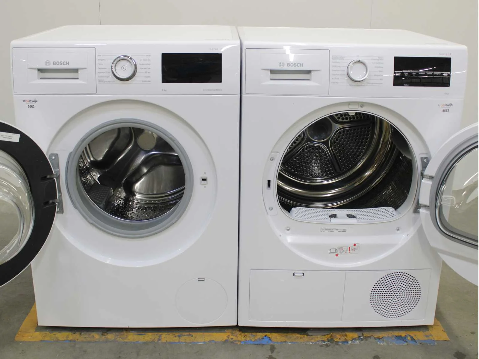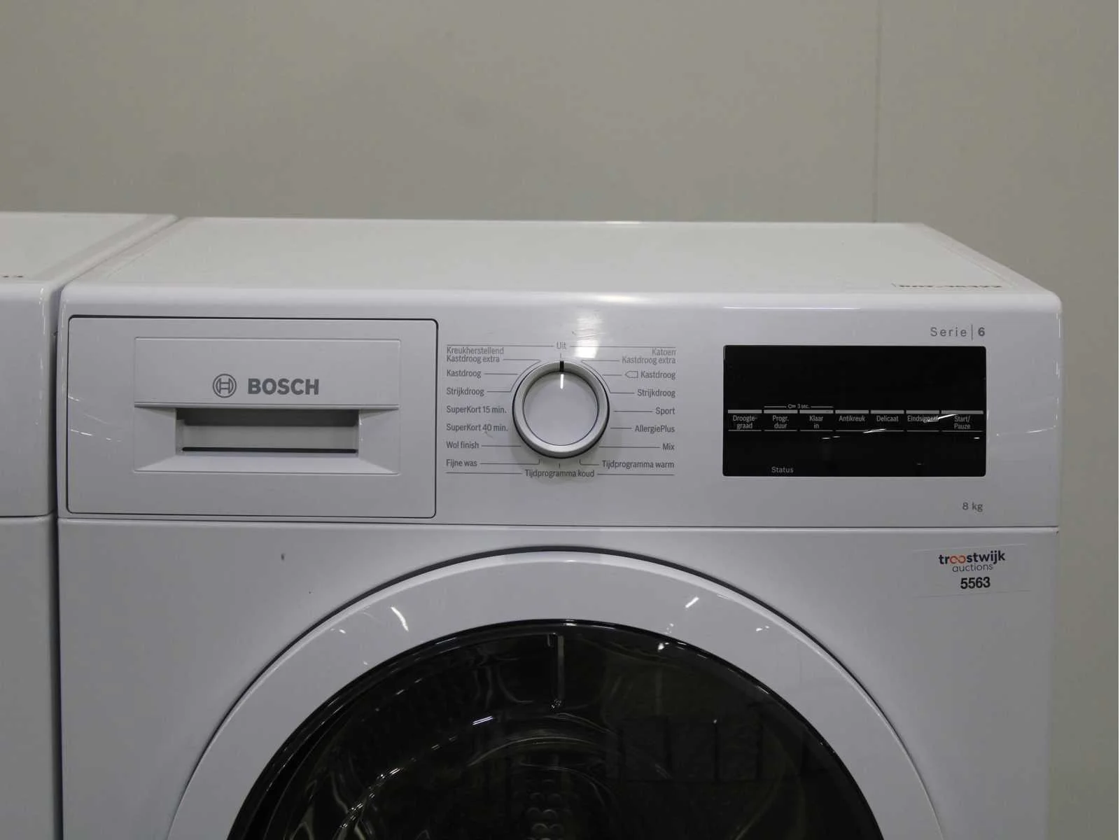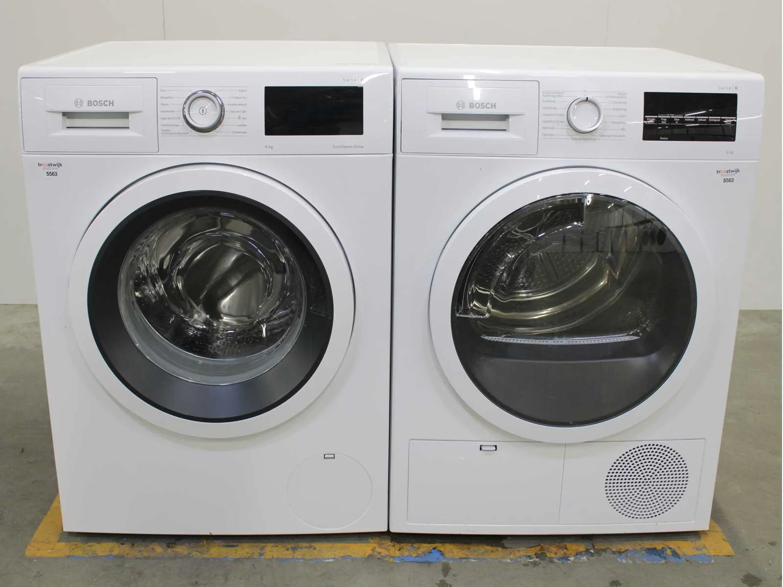 Deze wasmachine en wasdroger komen uit een partij jong gebruikt A-Merk witgoed. De machines zijn volledig getest, gereinigd en indien nodig gerepareerd. Houdt er rekening mee dat de machines lichte gebruikssporen kunnen hebben. Wasmachines en wasdrogers hebben vaak standaard afmetingen. Hoogte 85cm, Breedte 60cm en Diepte 60 tot 70cm, incl. uitstekende slangen e.d. aan de achterzijde. Als de machine vrij komt te staan is de afmeting minder relevant. Wil je de machine in een nis plaatsen of inbouwen? Controleer dan de exacte afmetingen op basis van het aangeboden merk en model/type. Within 7 days Merk: Bosch Serienummer: WAT285C0NL/56 en WTG846C0NL