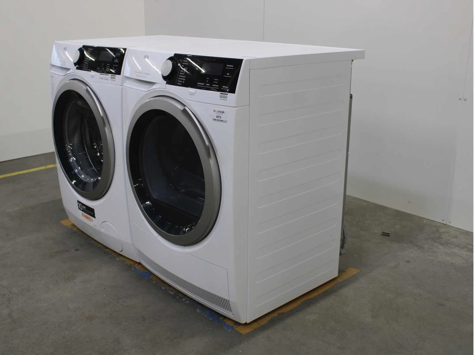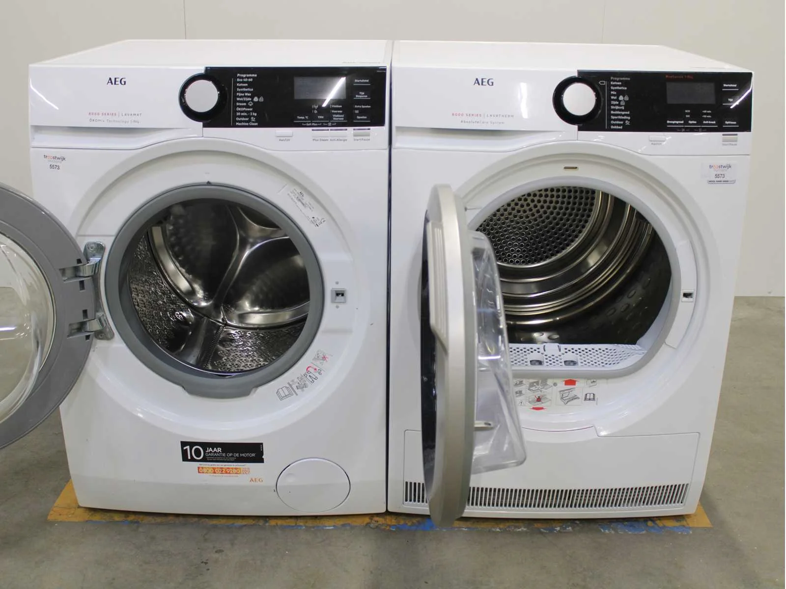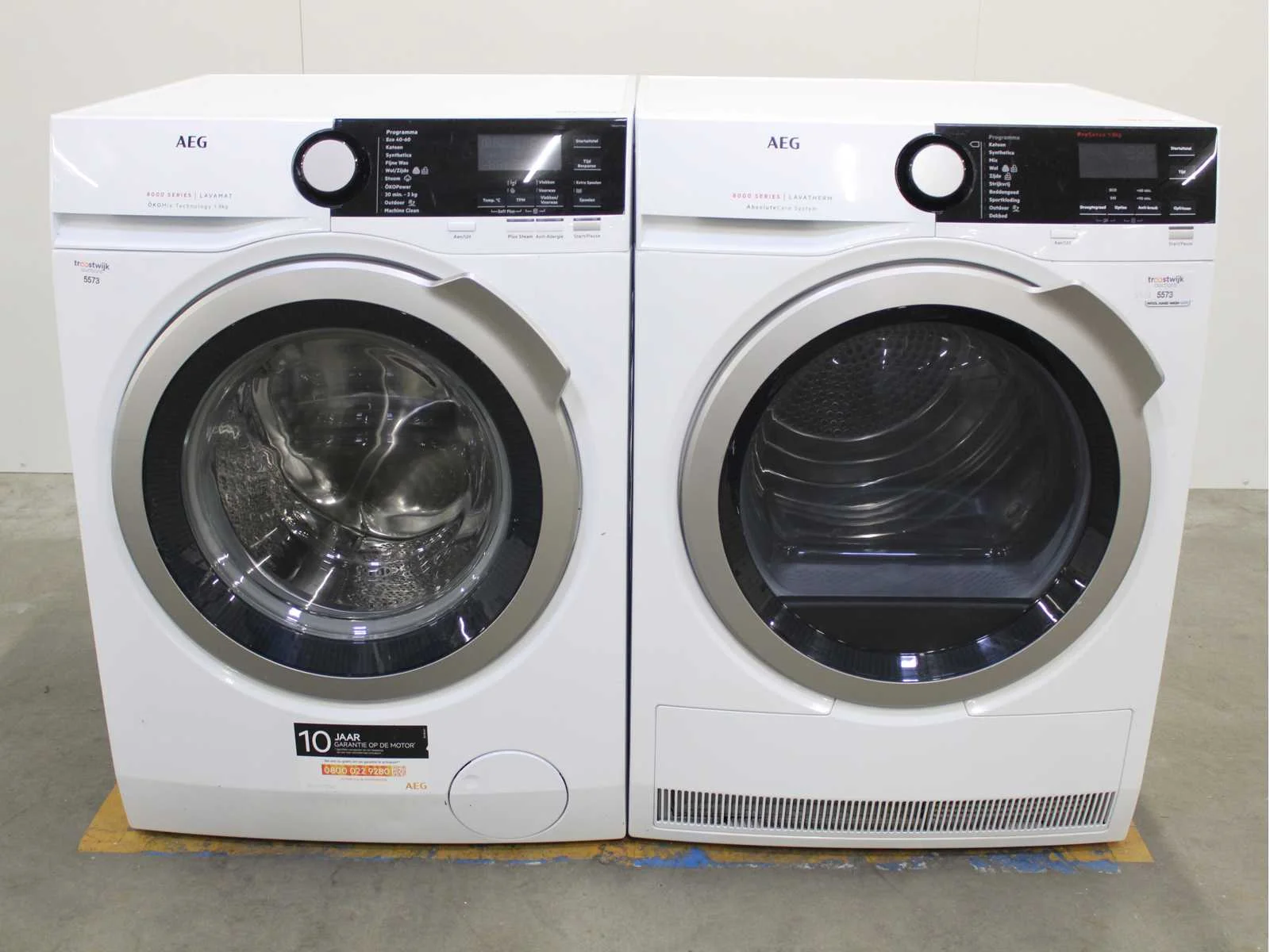 Deze wasmachine en wasdroger komen uit een partij jong gebruikt A-Merk witgoed. De machines zijn volledig getest, gereinigd en indien nodig gerepareerd. Houdt er rekening mee dat de machines lichte gebruikssporen kunnen hebben. Wasmachines en wasdrogers hebben vaak standaard afmetingen. Hoogte 85cm, Breedte 60cm en Diepte 60 tot 70cm, incl. uitstekende slangen e.d. aan de achterzijde. Als de machine vrij komt te staan is de afmeting minder relevant. Wil je de machine in een nis plaatsen of inbouwen? Controleer dan de exacte afmetingen op basis van het aangeboden merk en model/type. Within 7 days Merk: AEG Serienummer: L8FEOKOMIX en T8D86ES
