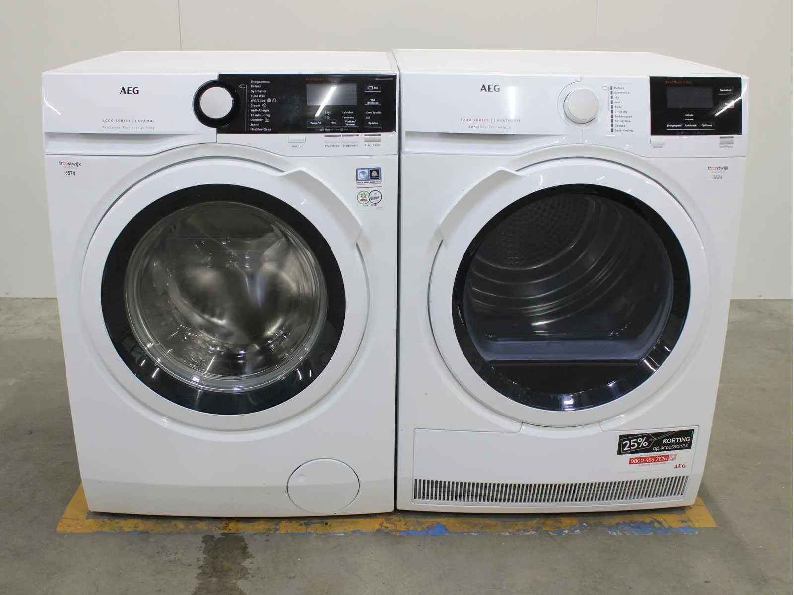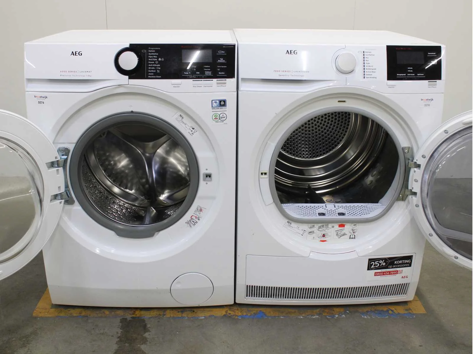Deze wasmachine en wasdroger komen uit een partij jong gebruikt A-Merk witgoed. De machines zijn volledig getest, gereinigd en indien nodig gerepareerd. Houdt er rekening mee dat de machines lichte gebruikssporen kunnen hebben. Wasmachines en wasdrogers hebben vaak standaard afmetingen. Hoogte 85cm, Breedte 60cm en Diepte 60 tot 70cm, incl. uitstekende slangen e.d. aan de achterzijde. Als de machine vrij komt te staan is de afmeting minder relevant. Wil je de machine in een nis plaatsen of inbouwen? Controleer dan de exacte afmetingen op basis van het aangeboden merk en model/type. Within 7 days Merk: AEG Serienummer: L7FB60Y en T7DB83GW