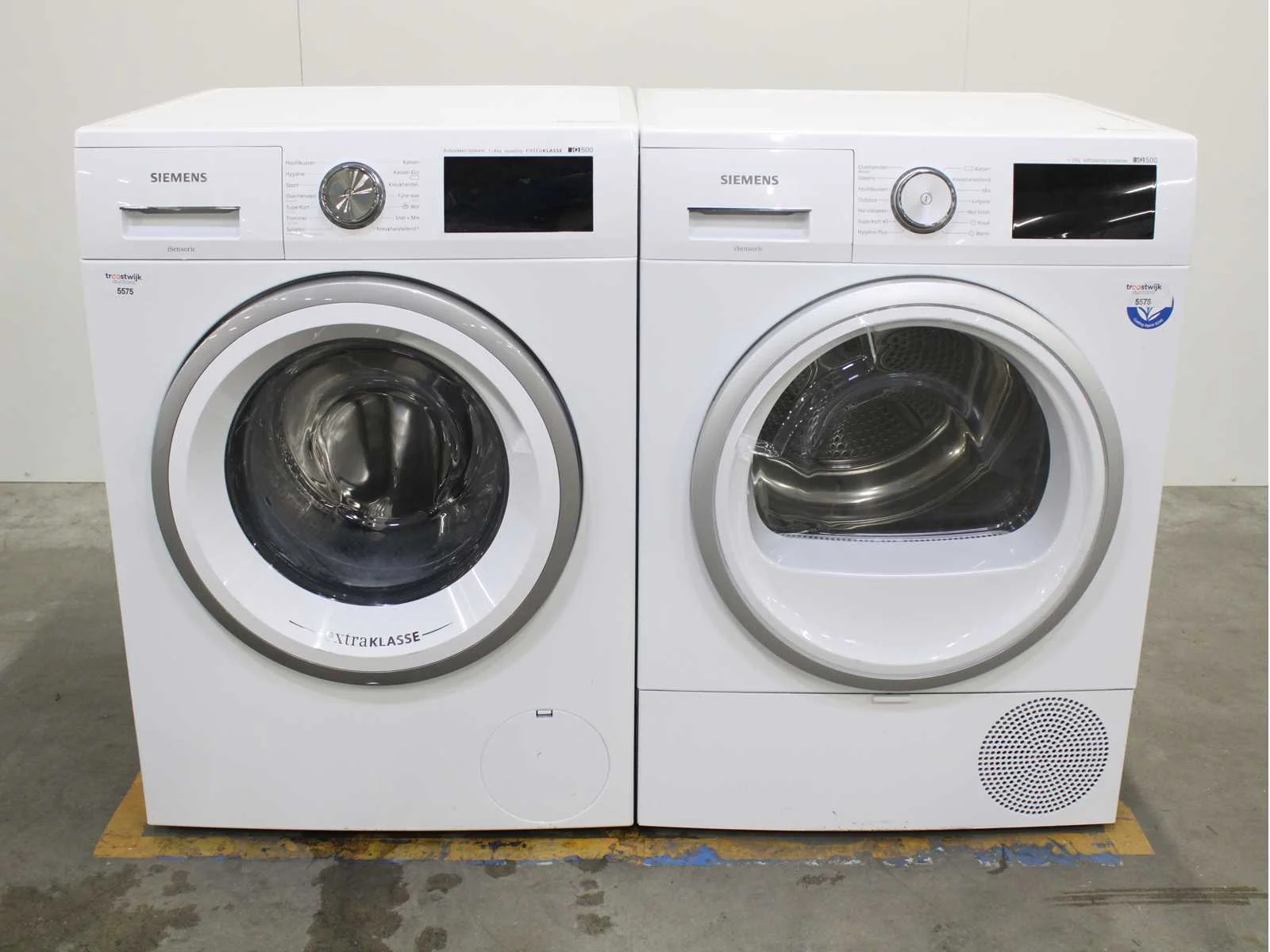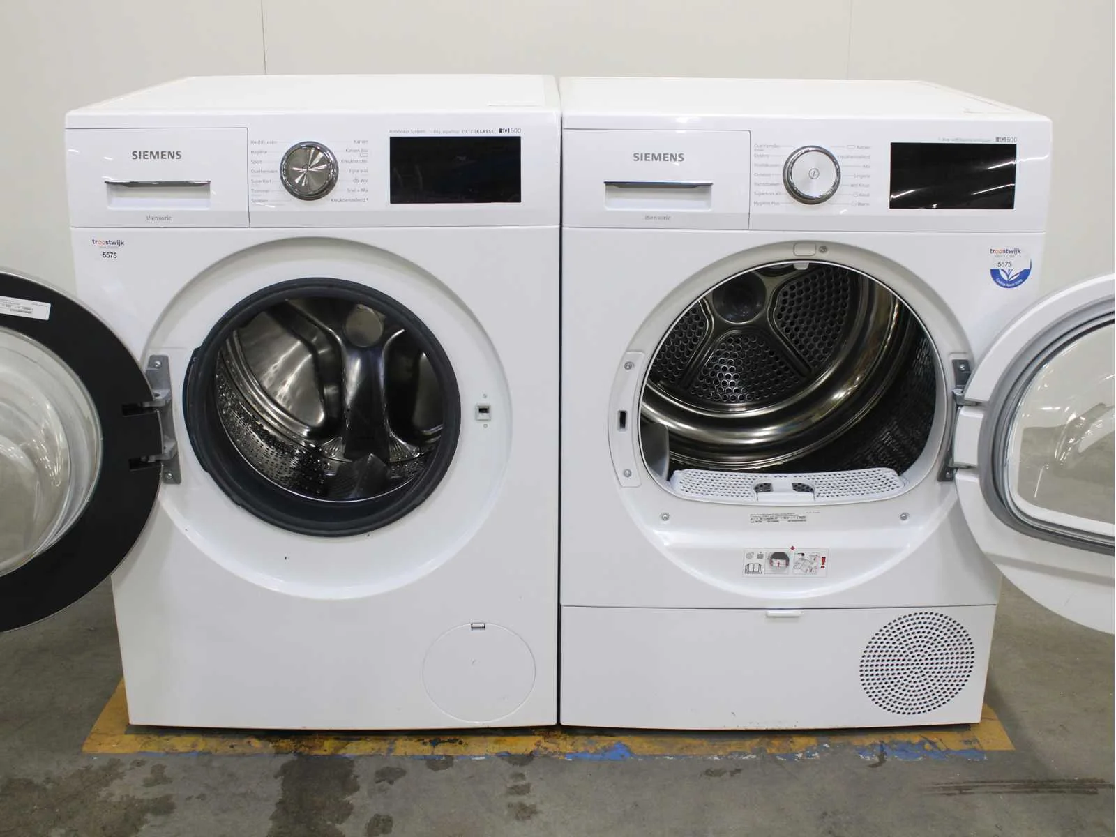 Deze wasmachine en wasdroger komen uit een partij jong gebruikt A-Merk witgoed. De machines zijn volledig getest, gereinigd en indien nodig gerepareerd. Houdt er rekening mee dat de machines lichte gebruikssporen kunnen hebben. Wasmachines en wasdrogers hebben vaak standaard afmetingen. Hoogte 85cm, Breedte 60cm en Diepte 60 tot 70cm, incl. uitstekende slangen e.d. aan de achterzijde. Als de machine vrij komt te staan is de afmeting minder relevant. Wil je de machine in een nis plaatsen of inbouwen? Controleer dan de exacte afmetingen op basis van het aangeboden merk en model/type. Within 7 days Merk: Siemens Serienummer: WM14T590 en WT7U4660NL