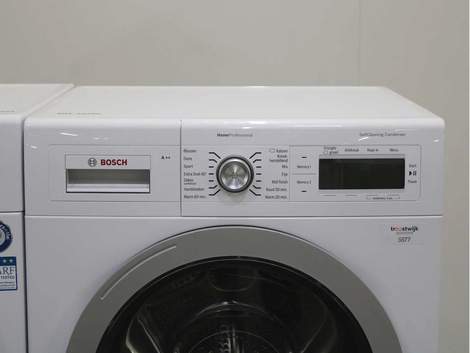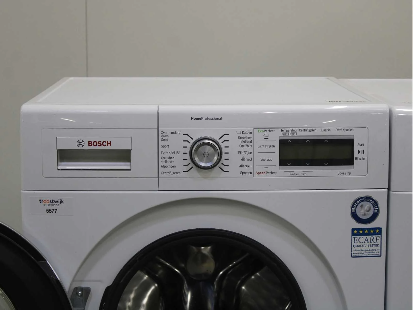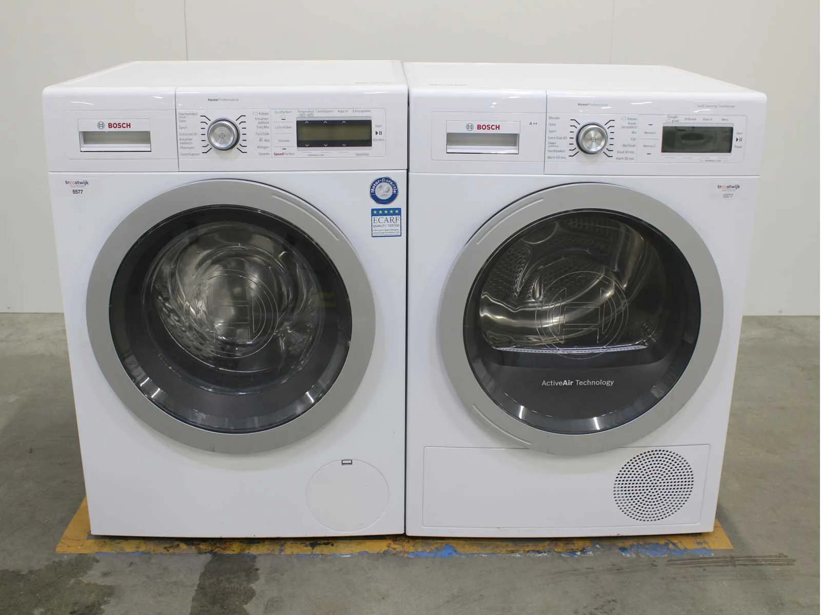 Deze wasmachine en wasdroger komen uit een partij jong gebruikt A-Merk witgoed. De machines zijn volledig getest, gereinigd en indien nodig gerepareerd. Houdt er rekening mee dat de machines lichte gebruikssporen kunnen hebben. Wasmachines en wasdrogers hebben vaak standaard afmetingen. Hoogte 85cm, Breedte 60cm en Diepte 60 tot 70cm, incl. uitstekende slangen e.d. aan de achterzijde. Als de machine vrij komt te staan is de afmeting minder relevant. Wil je de machine in een nis plaatsen of inbouwen? Controleer dan de exacte afmetingen op basis van het aangeboden merk en model/type. Within 7 days Merk: Bosch Serienummer: WAY32541NL en WTY87700NL/20
