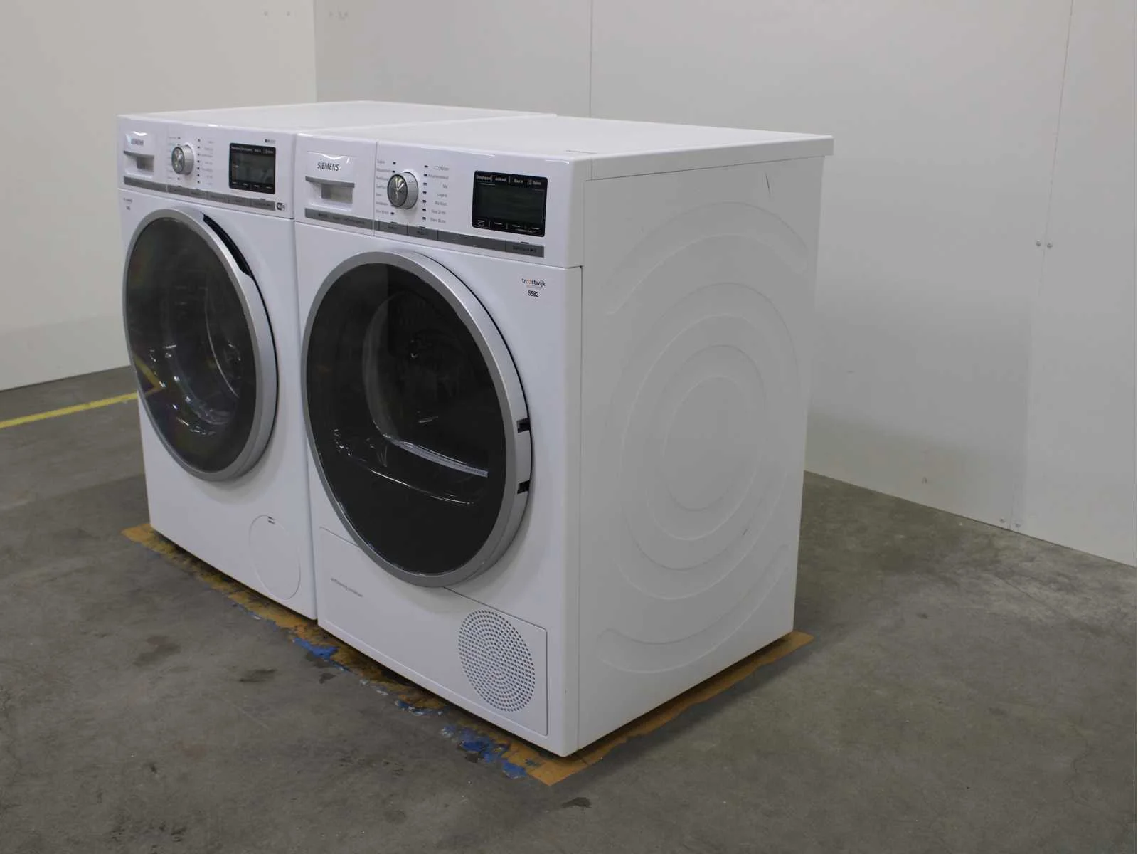 Deze wasmachine en wasdroger komen uit een partij jong gebruikt A-Merk witgoed. De machines zijn volledig getest, gereinigd en indien nodig gerepareerd. Houdt er rekening mee dat de machines lichte gebruikssporen kunnen hebben. Wasmachines en wasdrogers hebben vaak standaard afmetingen. Hoogte 85cm, Breedte 60cm en Diepte 60 tot 70cm, incl. uitstekende slangen e.d. aan de achterzijde. Als de machine vrij komt te staan is de afmeting minder relevant. Wil je de machine in een nis plaatsen of inbouwen? Controleer dan de exacte afmetingen op basis van het aangeboden merk en model/type. Within 7 days Merk: Siemens Serienummer: WMH6Y741NL en WT47Y700NL