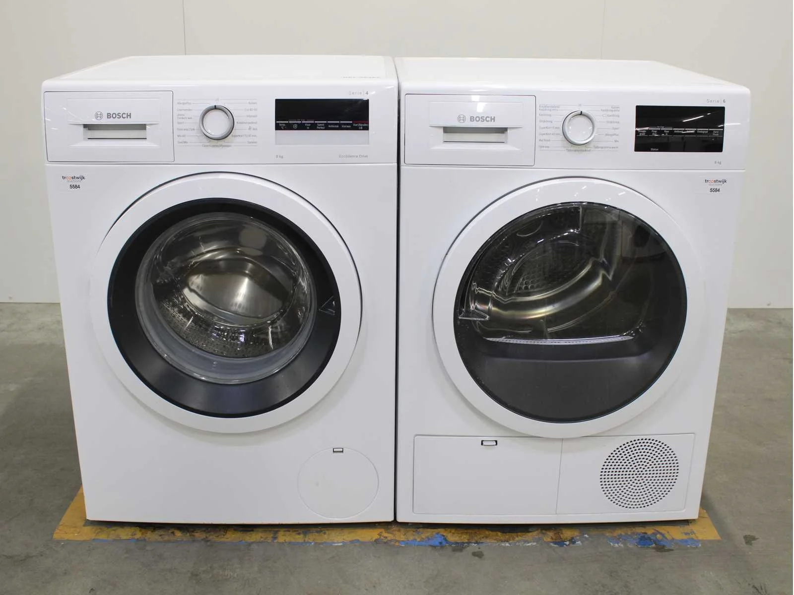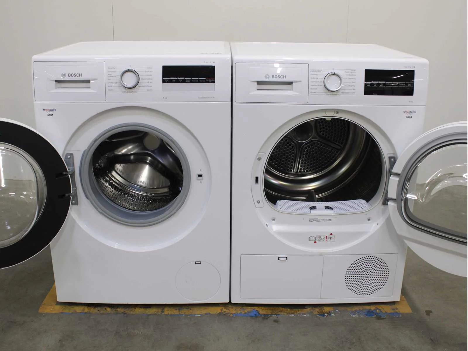 Deze wasmachine en wasdroger komen uit een partij jong gebruikt A-Merk witgoed. De machines zijn volledig getest, gereinigd en indien nodig gerepareerd. Houdt er rekening mee dat de machines lichte gebruikssporen kunnen hebben. Wasmachines en wasdrogers hebben vaak standaard afmetingen. Hoogte 85cm, Breedte 60cm en Diepte 60 tot 70cm, incl. uitstekende slangen e.d. aan de achterzijde. Als de machine vrij komt te staan is de afmeting minder relevant. Wil je de machine in een nis plaatsen of inbouwen? Controleer dan de exacte afmetingen op basis van het aangeboden merk en model/type. Within 7 days Merk: Bosch Serienummer: WAN28275NL en WTG846C0NL
