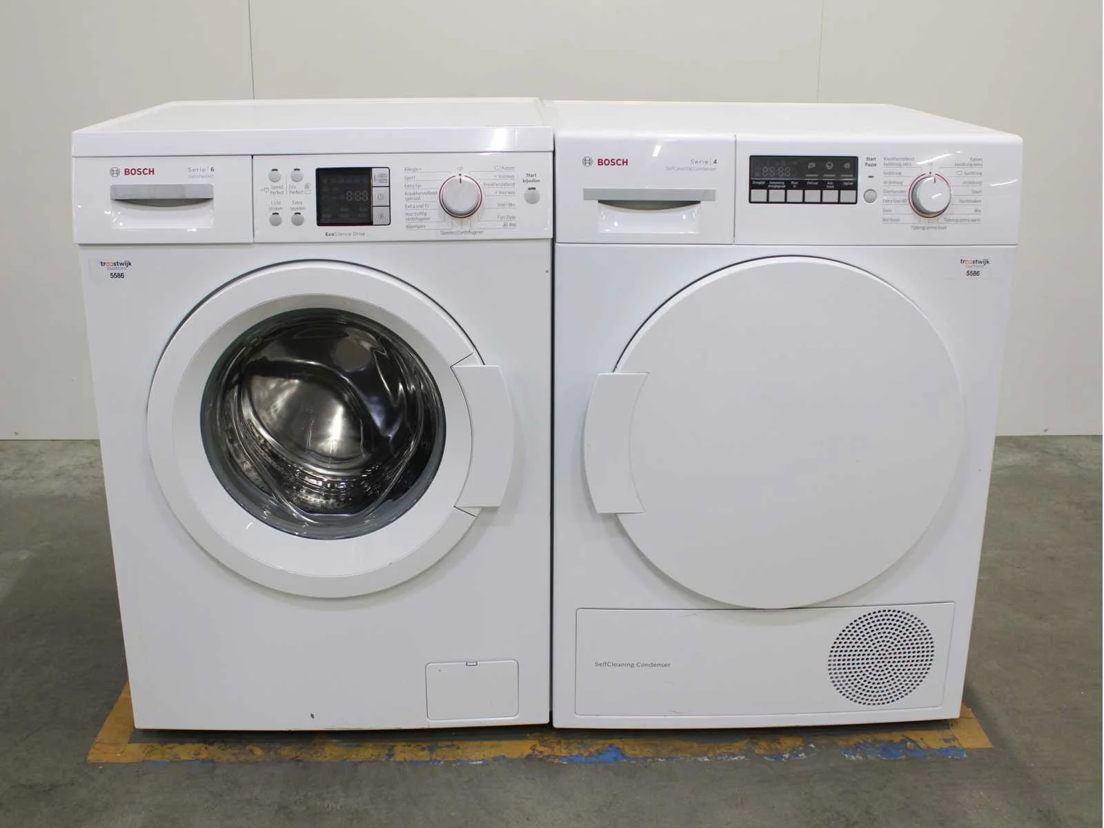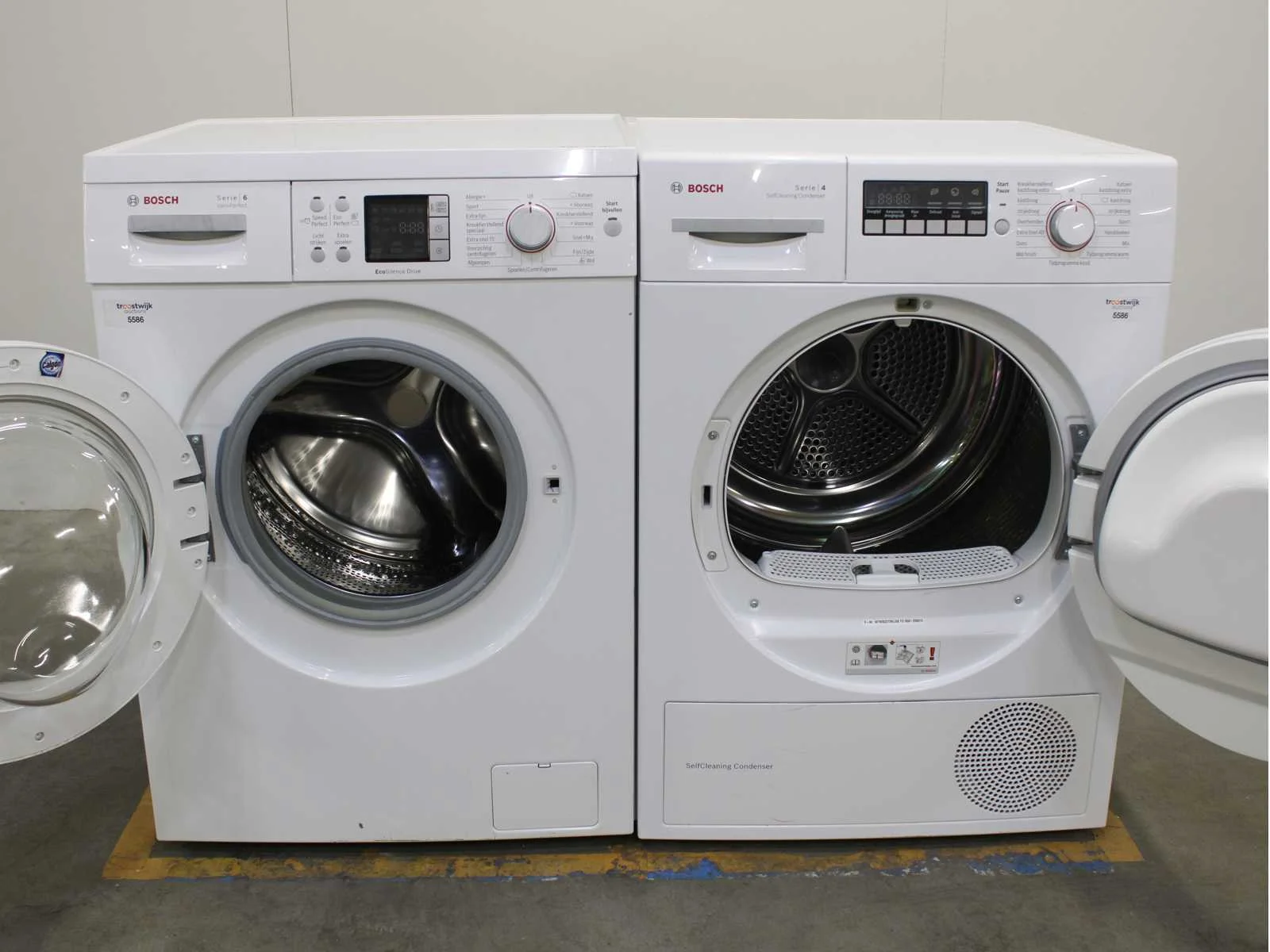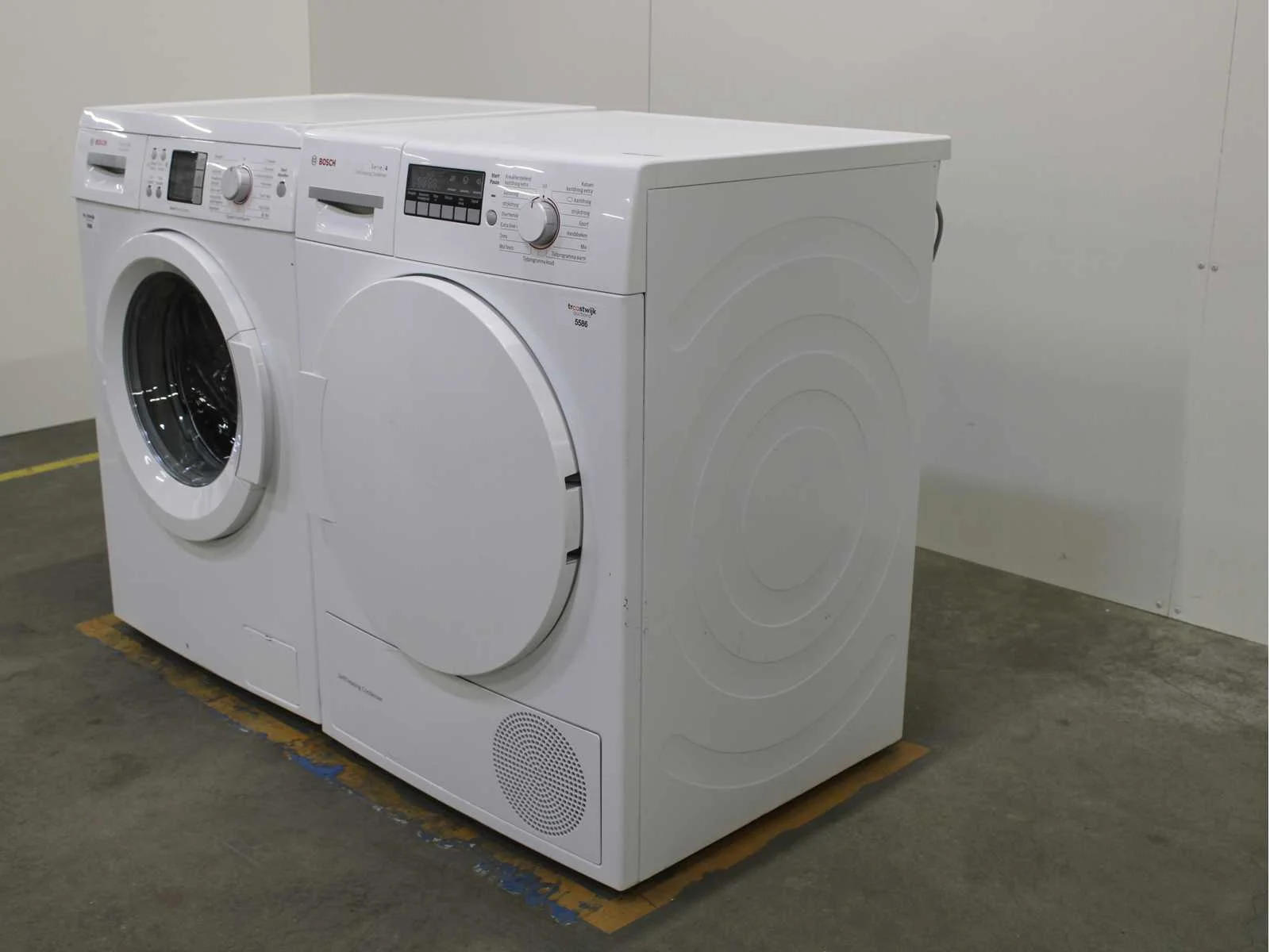 Deze wasmachine en wasdroger komen uit een partij jong gebruikt A-Merk witgoed. De machines zijn volledig getest, gereinigd en indien nodig gerepareerd. Houdt er rekening mee dat de machines lichte gebruikssporen kunnen hebben. Wasmachines en wasdrogers hebben vaak standaard afmetingen. Hoogte 85cm, Breedte 60cm en Diepte 60 tot 70cm, incl. uitstekende slangen e.d. aan de achterzijde. Als de machine vrij komt te staan is de afmeting minder relevant. Wil je de machine in een nis plaatsen of inbouwen? Controleer dan de exacte afmetingen op basis van het aangeboden merk en model/type. Within 7 days Merk: Bosch Serienummer: WAQ28463NL en WTW83272NL/08
