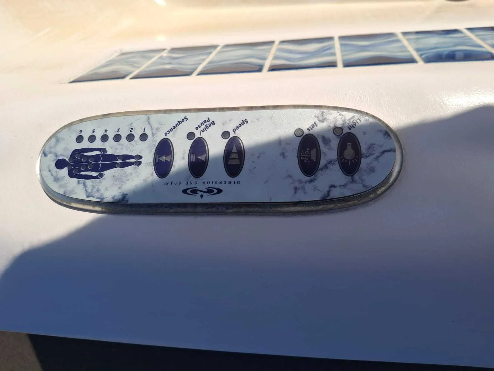 Voorzien van kunststof omkasting; automatisch filtersysteem; nek/schouder massage; kunststof massage jets; Niet getest op functioneren (Marge, geen BTW) Merk: Demension one Model: Amerikaanse 6 persoons Verlichting: Ja Jets: 44 Aantal personen: 6 Lengte: 230cm Breedte: 230cm Hoogte: 91cm