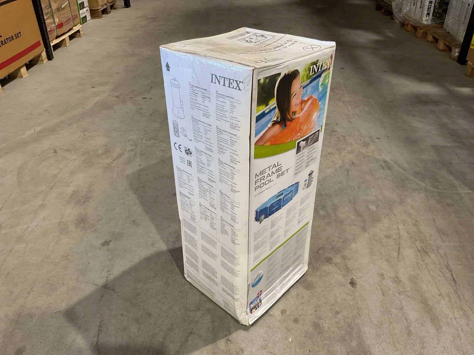 Voorzien van Opzetzwembad; 3-laags PVC met gerasterde polyester tussenlaag; Frame gepoedercoat staal; Vorm: Rond; Inhoud 6503 liter; Pompaansluiting (mm) 32; Diameter (cm) 366; Hoogte (cm) 76; Dikte liner wand (mm) 0,50; Dikte liner bodem (mm) 0,265; Reparatieset; Ongebruikt in doos Merk: INTEX Model: 28212GN Product type: 3,7m Kleur: Blauw Gewicht: 21.9kg Lengte: 31.8cm Breedte: 29.8cm Hoogte: 87.6cm Materiaal: Dubbelwandig PVC folie met gerasterde binnenlaag