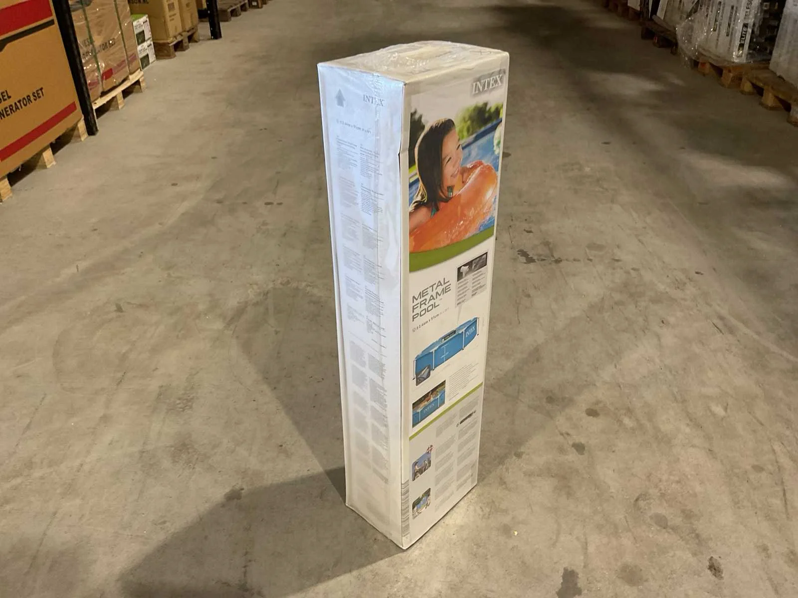 Voorzien van Opzetzwembad; 3-laags PVC met gerasterde polyester tussenlaag; Frame gepoedercoat staal; Vorm: Rond; Inhoud 1828 liter; Aanbevolen waterdiepte (cm) 38; Pompaansluiting (mm) 32; Buitenafmeting Diameter x Hoogte (cm) 244 x 51; Dikte liner wand (mm) 0,50; Dikte liner bodem (mm) 0,265; Reparatieset; Ongebruikt in doos Merk: INTEX Model: 28205NP Product type: 2,4m Kleur: Blauw Gewicht: 9.25kg Lengte: 25.4cm Breedte: 17.5cm Hoogte: 94.6cm Materiaal: Dubbelwandig PVC folie met gerasterde binnenlaag