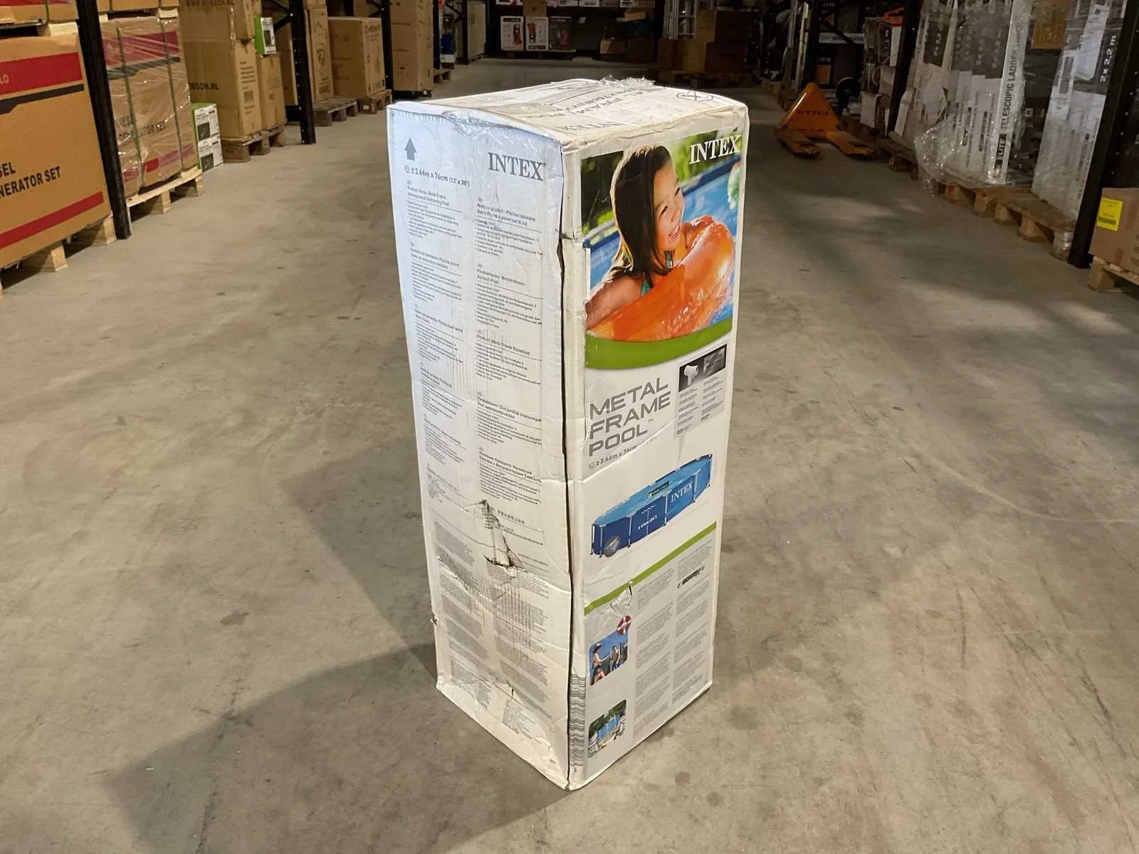 Voorzien van Opzetzwembad; 3-laags PVC met gerasterde polyester tussenlaag; Frame gepoedercoat staal; Vorm: Rond; Inhoud 6503 liter; Pompaansluiting (mm) 32; Diameter (cm) 366; Hoogte (cm) 76; Dikte liner wand (mm) 0,50; Dikte liner bodem (mm) 0,32; Reparatieset; Ongebruikt in doos Merk: INTEX Model: 28210NP Product type: 3,7m Kleur: Blauw Gewicht: 21.9kg Lengte: 31.8cm Breedte: 29.8cm Hoogte: 87.6cm Materiaal: Dubbelwandig PVC folie met gerasterde binnenlaag