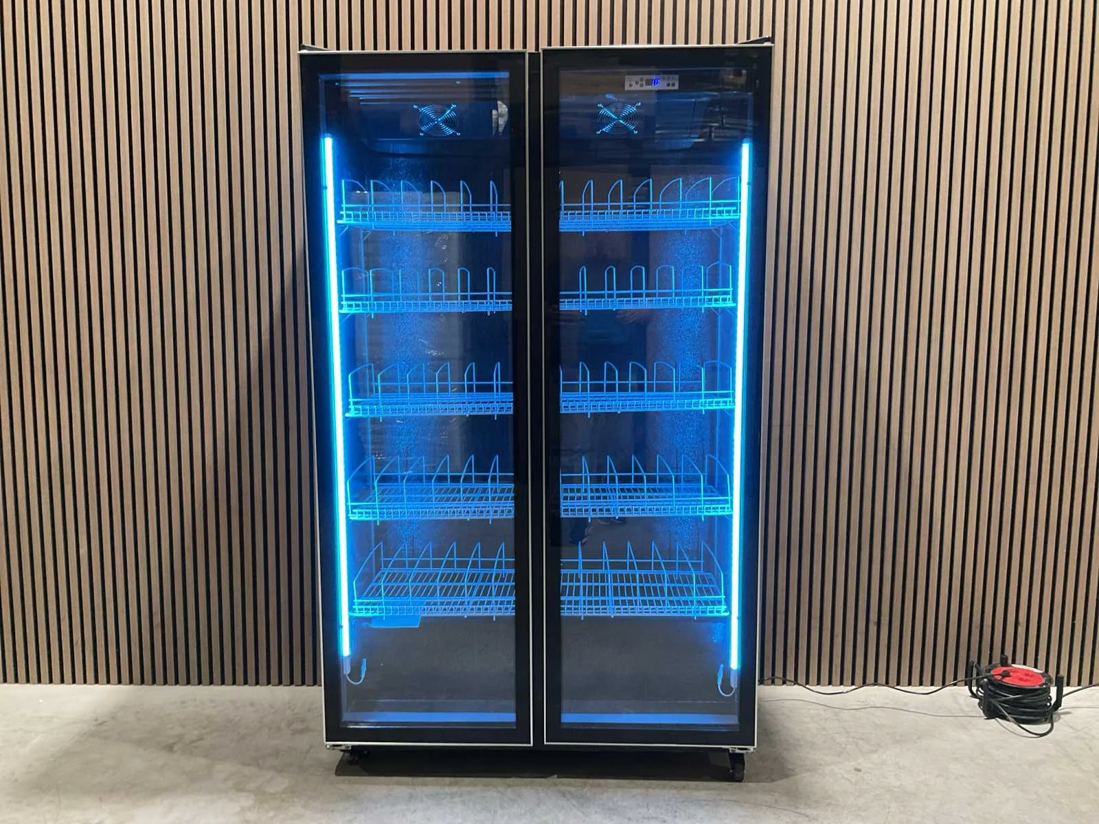 Voorzien van 2 glazen deur; Spanning: 220V / 50Hz; Koeltype: Ventilator gekoeld; Ontdooifunctie; Temperatuurbereik: 2 ~ 8°C; Verlichting; zwenkwielen; Ongebruikt Merk: Rhino-Cross-Catering Type: 2 Deuren WH02 Bouwjaar: 2025