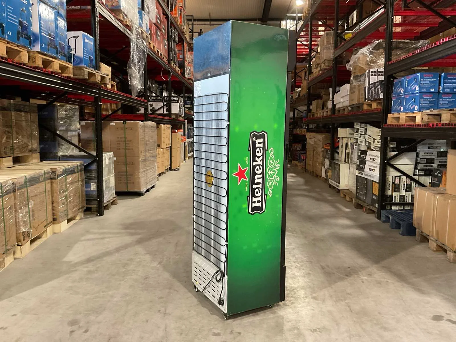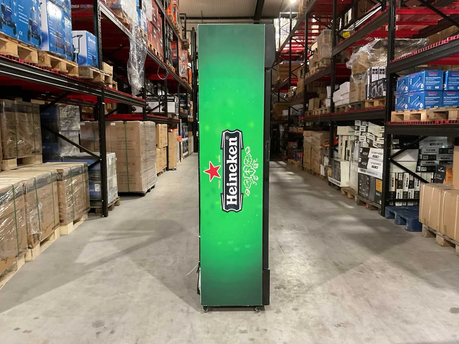 Voorzien van glazen deur; 2 sleutels; verlichting; 4 rekken; zwenk wielen; fan koeling; ongebruikt Merk: Heineken 1 deur Type: SL01 Bouwjaar: 2025