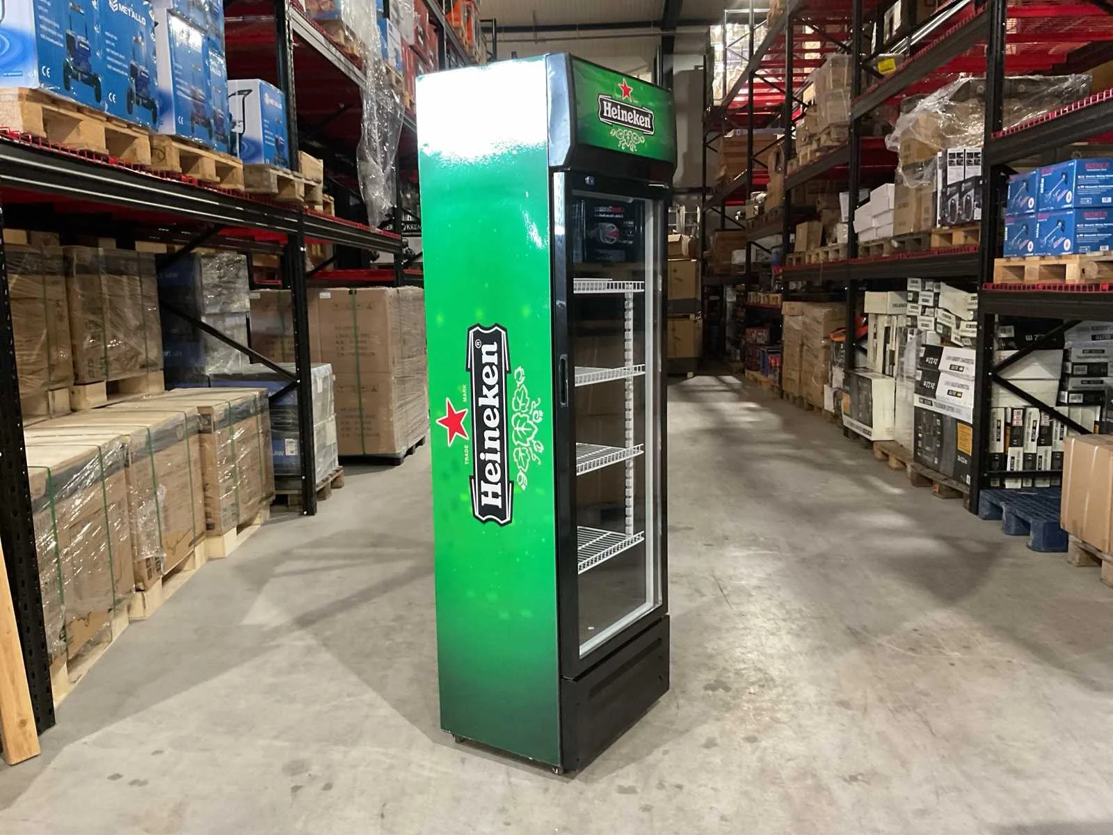 Voorzien van glazen deur; 2 sleutels; verlichting; 4 rekken; zwenk wielen; fan koeling; ongebruikt Merk: Heineken 1 deur Type: SL01 Bouwjaar: 2025