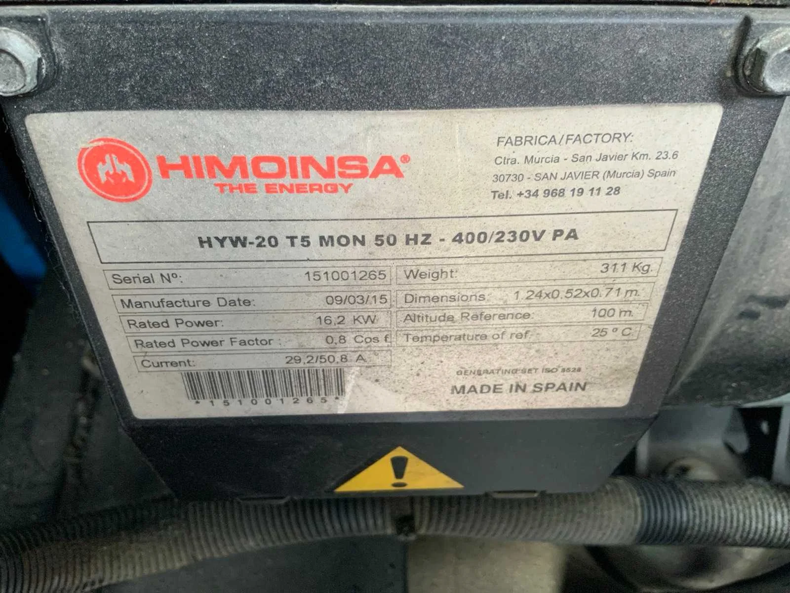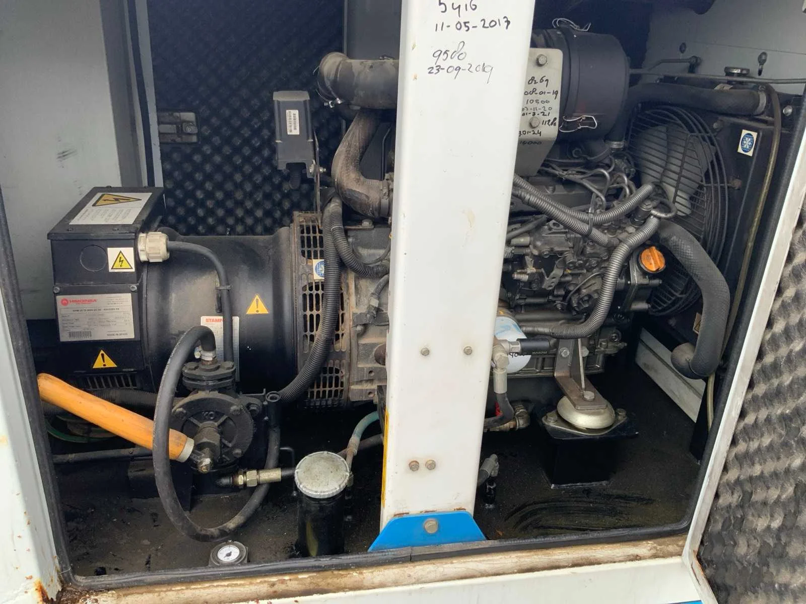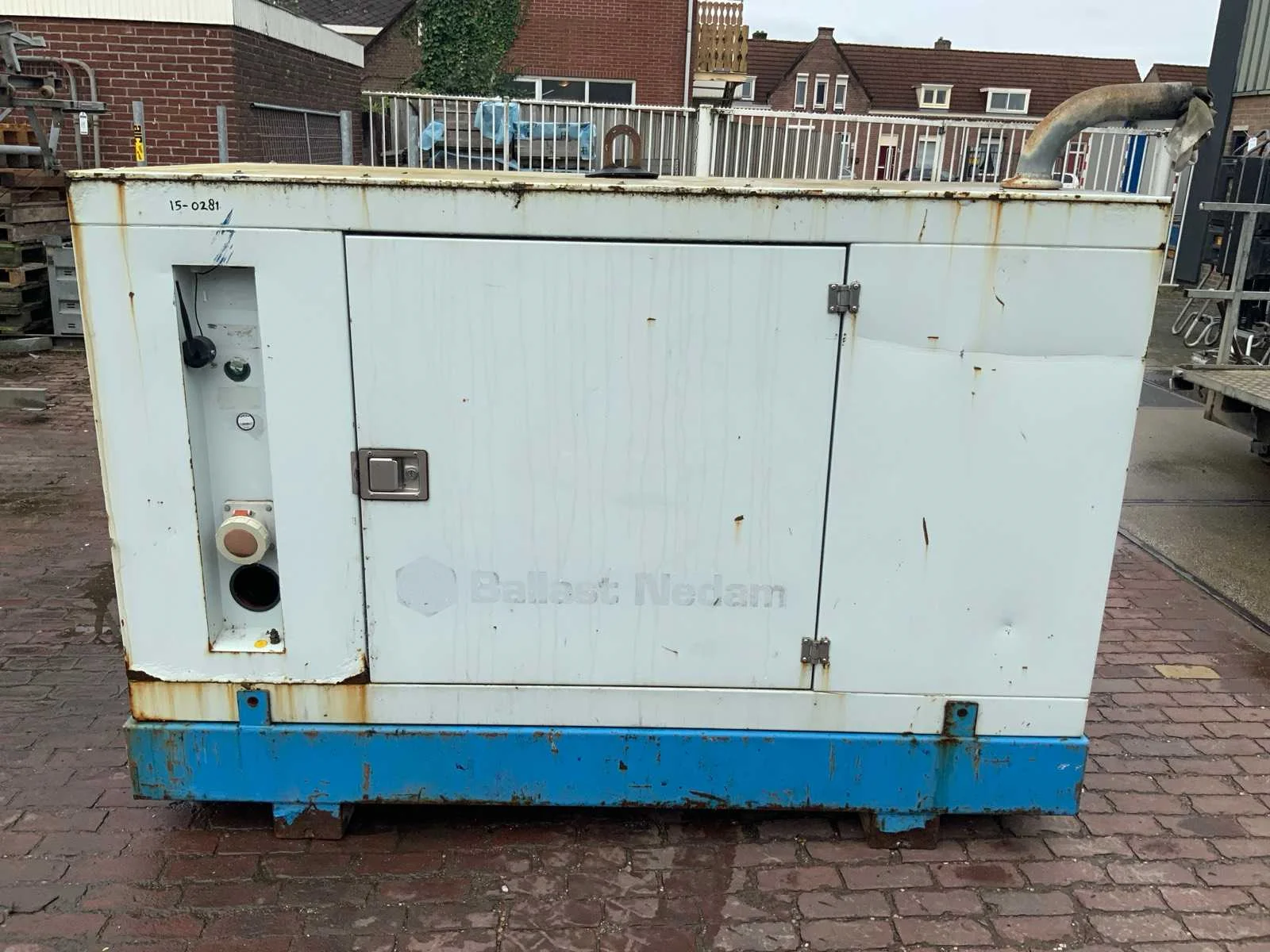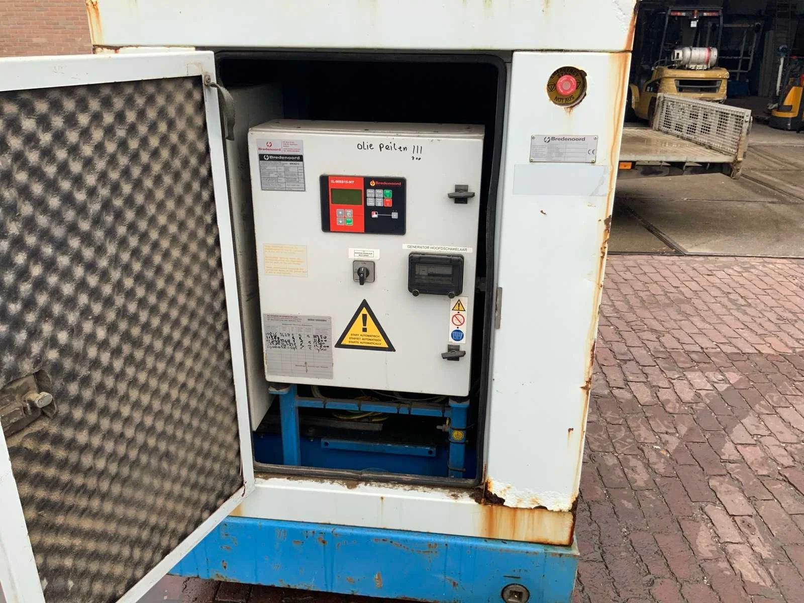 Aggregaat verbruikt olie Merk: Bredenoord Type: BRYAN20 Capaciteit.: 20kVA Aansluiting: 400V Totale afmeting L: 2200mm Totale afmeting Breedte: 1050mm Totale afmeting Hoogte: 1820mm