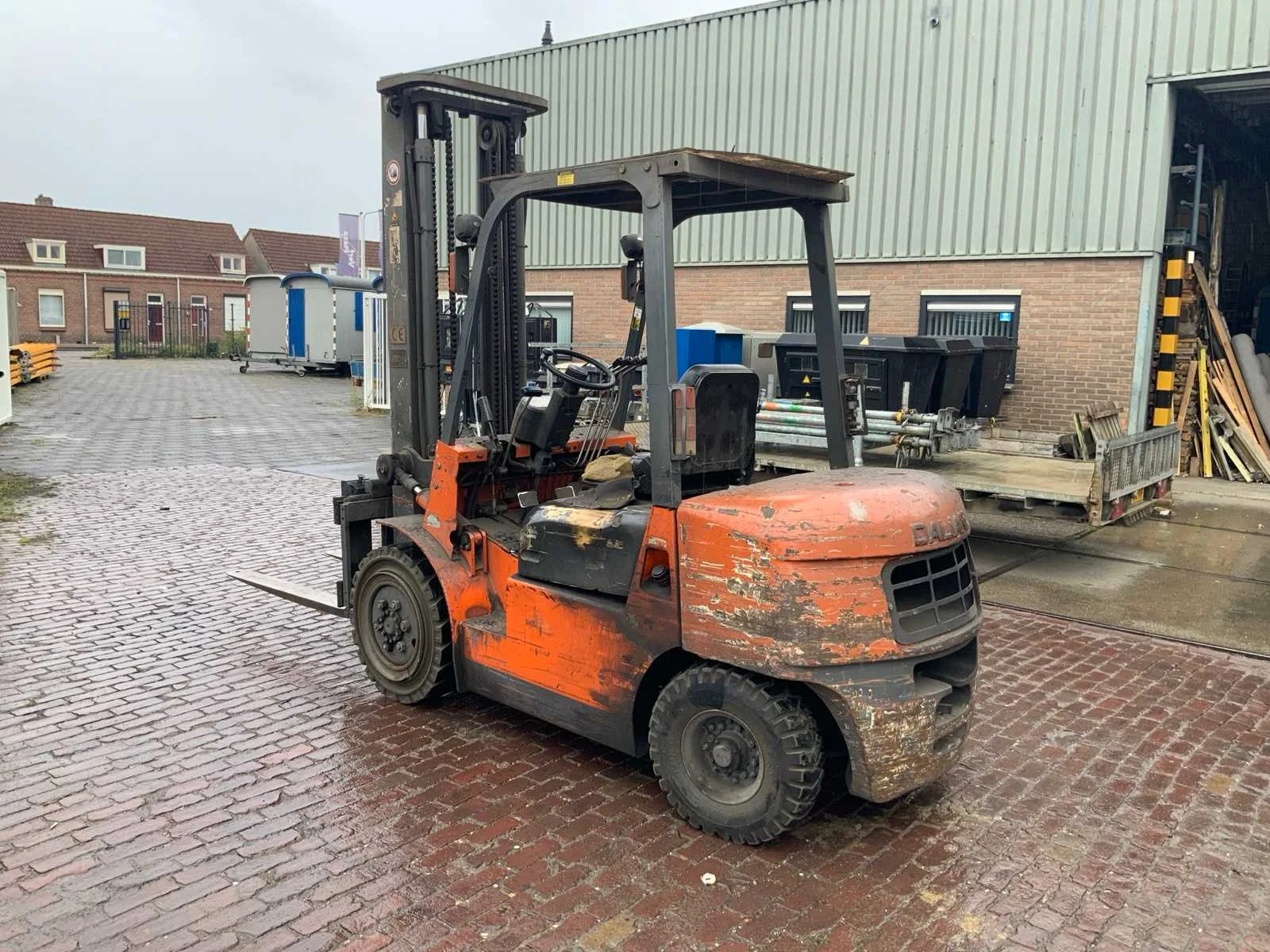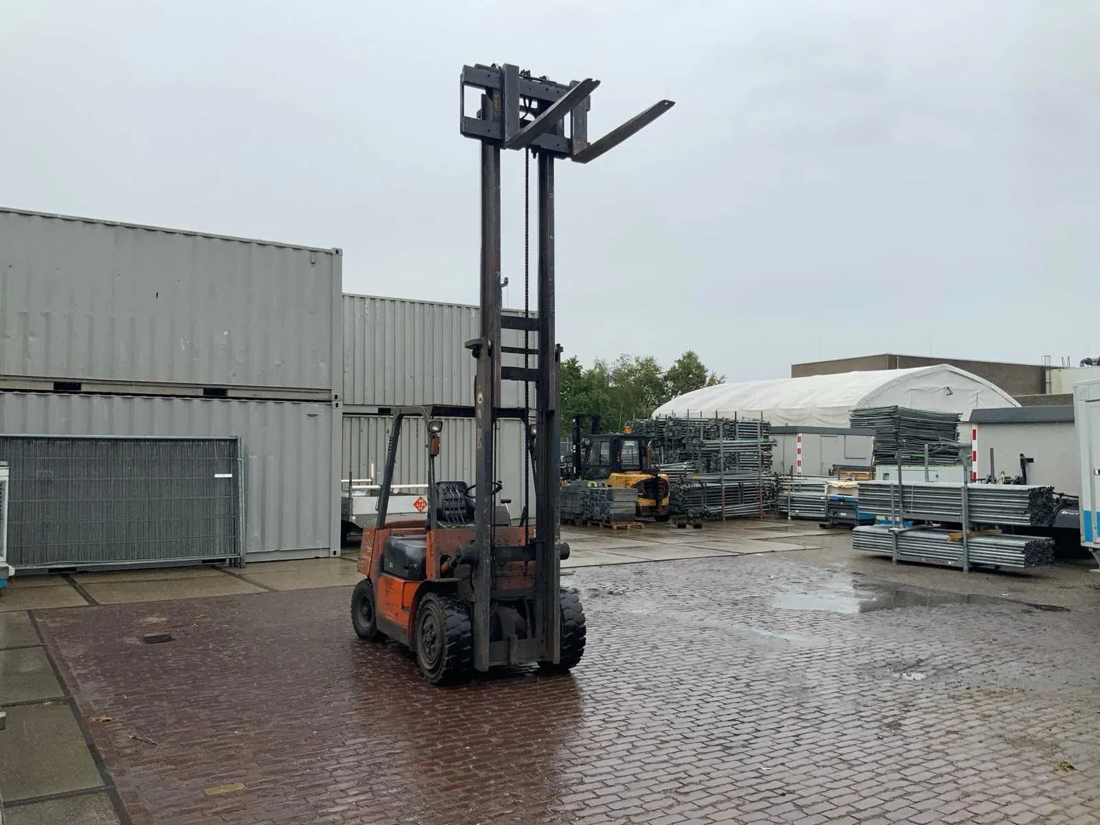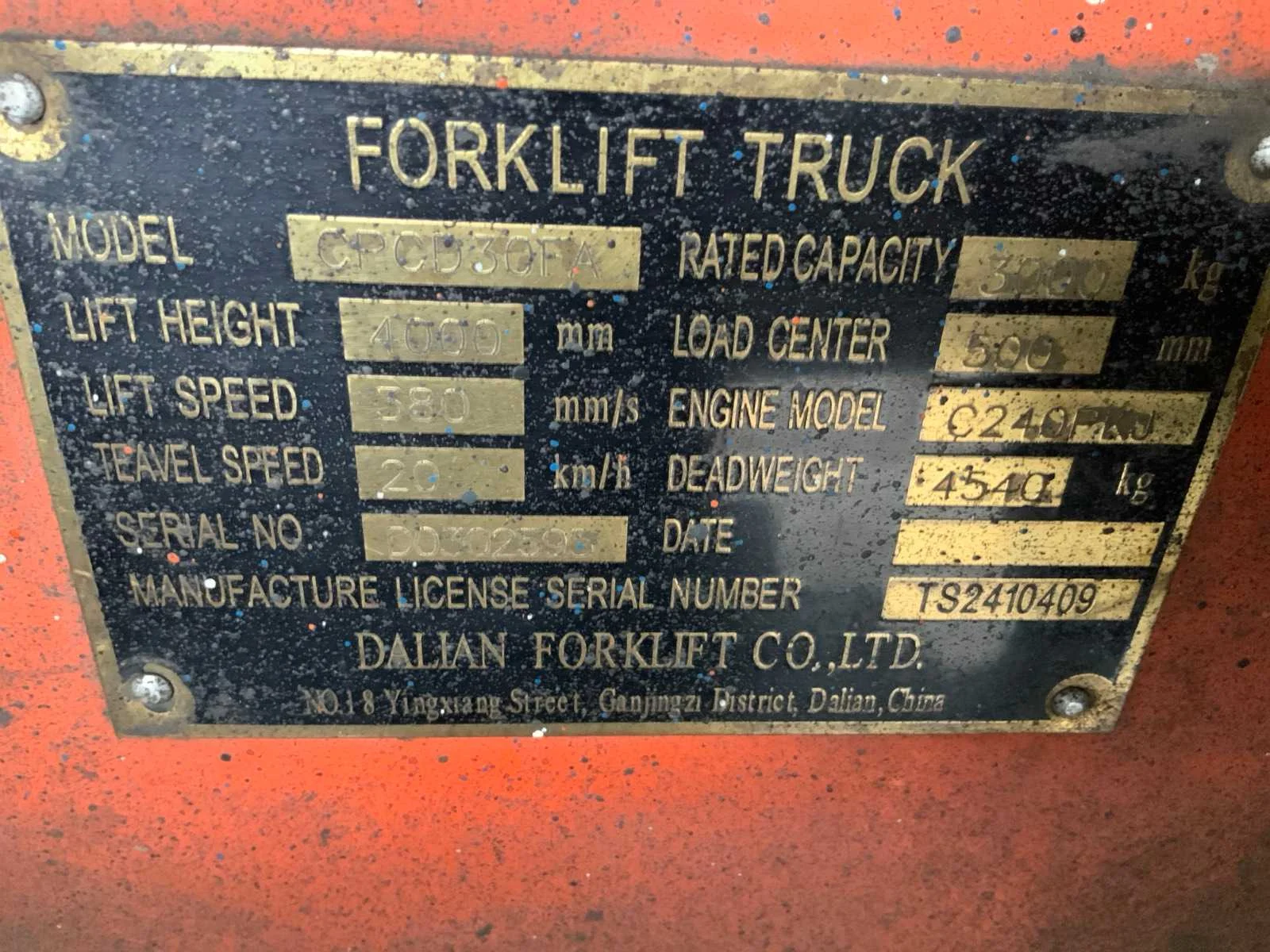 Motor isuzu Merk: Dalian Type: 3 ton Brandstof: Diesel Mast: Duplex Aantal wielen: 4 Side-shift: true Duplex mast: true Hefvermogen: 3000kg Lepellengte: 1180mm Luchtbanden: true Vol rubber banden: true Totale afmeting L: 4000mm Totale afmeting Breedte: 1250mm Totale afmeting Hoogte: 2600mm Diesel: true