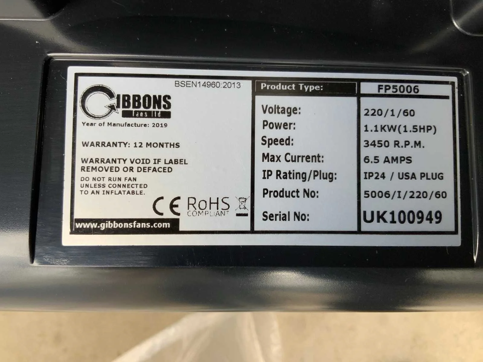 Merk: Gibbons Model: Luchtblower Lengte: 60cm Breedte: 30cm Hoogte: 55cm